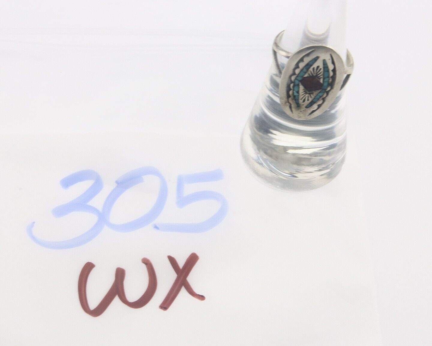 Navajo Ring 925 Sterling Natural Chip Inlay Coral & Turquoise C.80's Size 6.0
