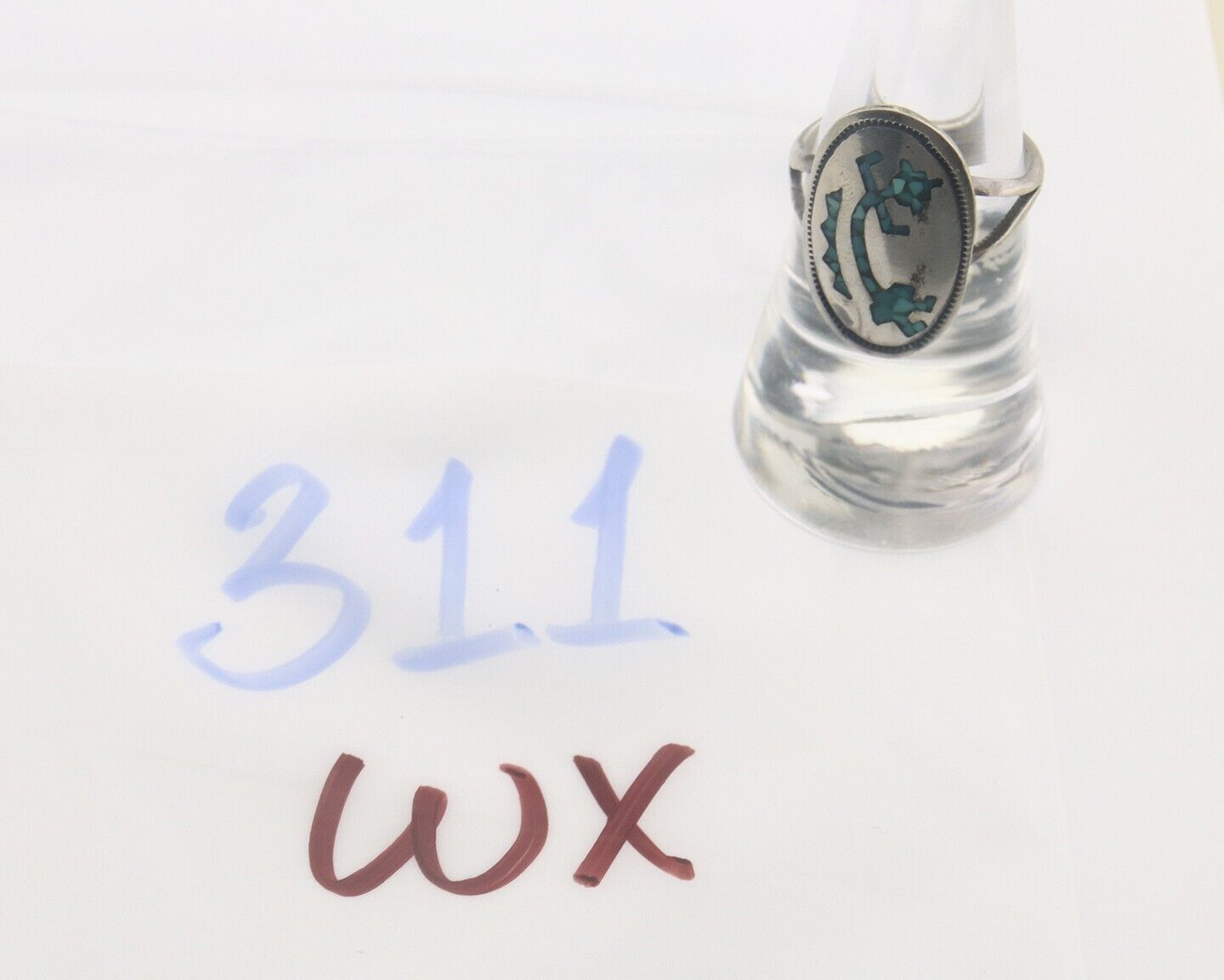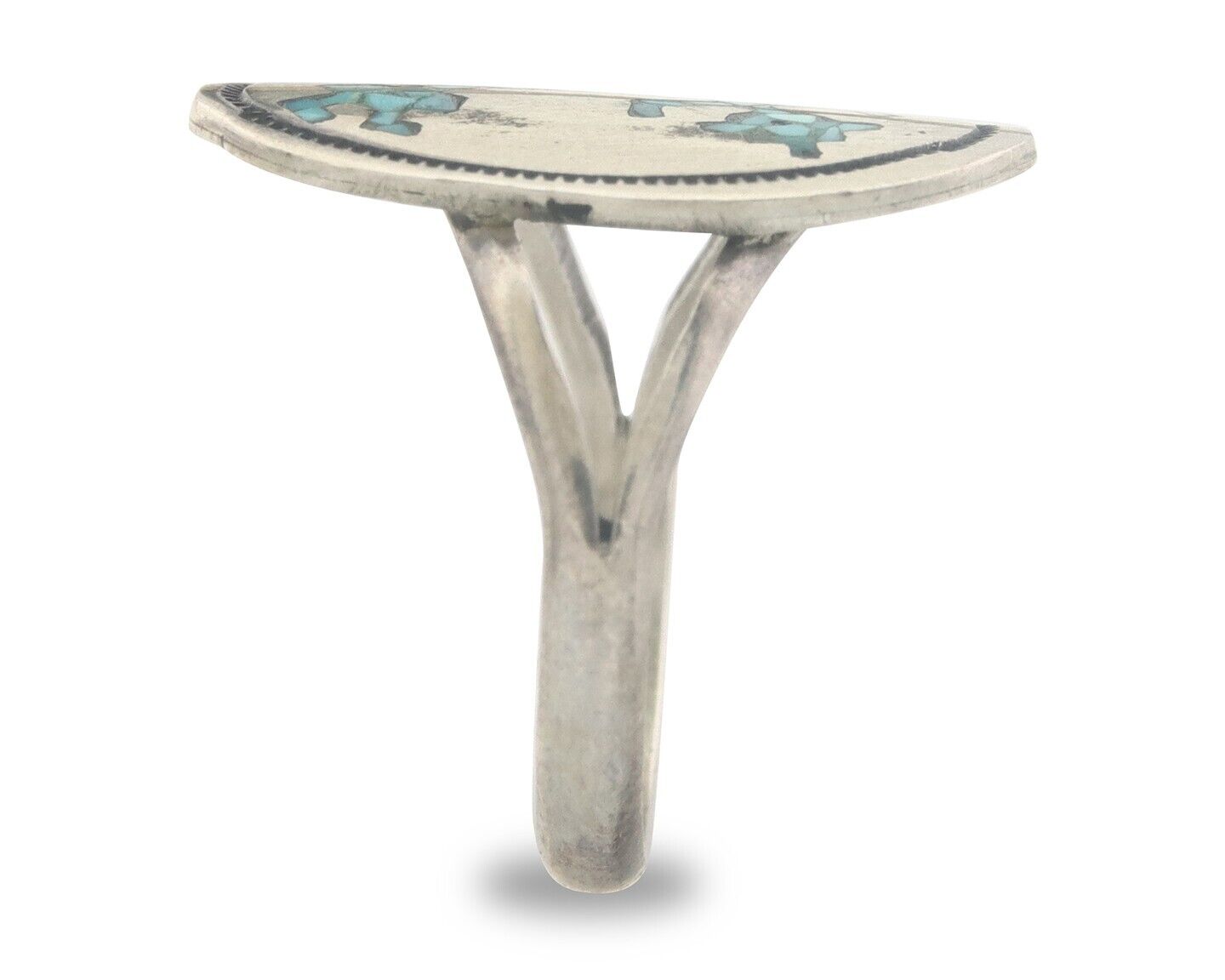 Navajo Ring 925 Sterling Natural Chip Inlay Turquoise C.80's Size 7.0