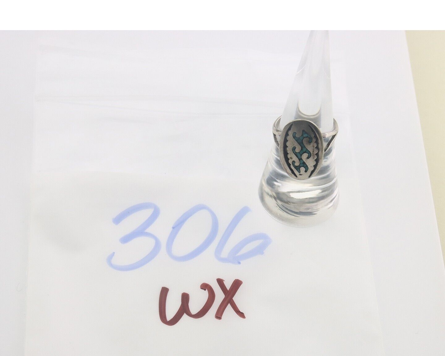 Navajo Ring 925 Sterling Natural Chip Inlay Turquoise C.80's Size 7.0