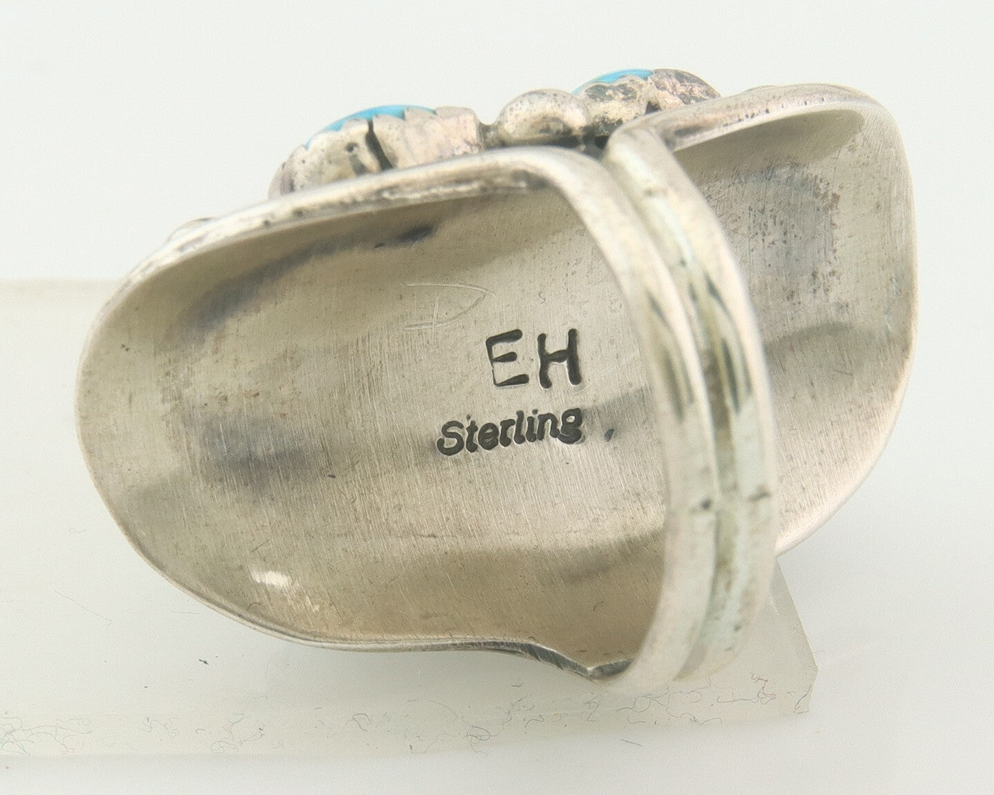 Navajo Ring 925 Sterling Natural Coral & Turquoise Signed EH C.80's Size 5.75