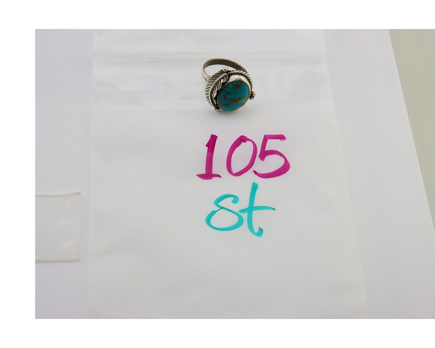 Navajo Ring 925 Sterling Silver Blue Turquoise Native American Artist C.80's
