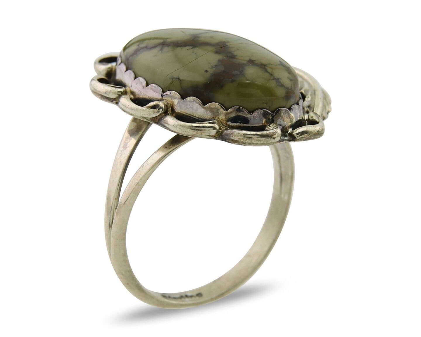 Navajo Ring 925 Sterling Silver Green Turquoise Native American Artist C.80s