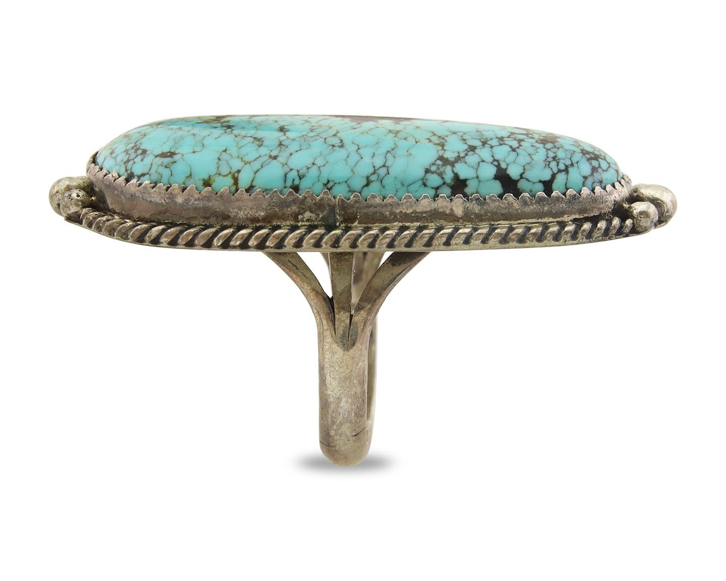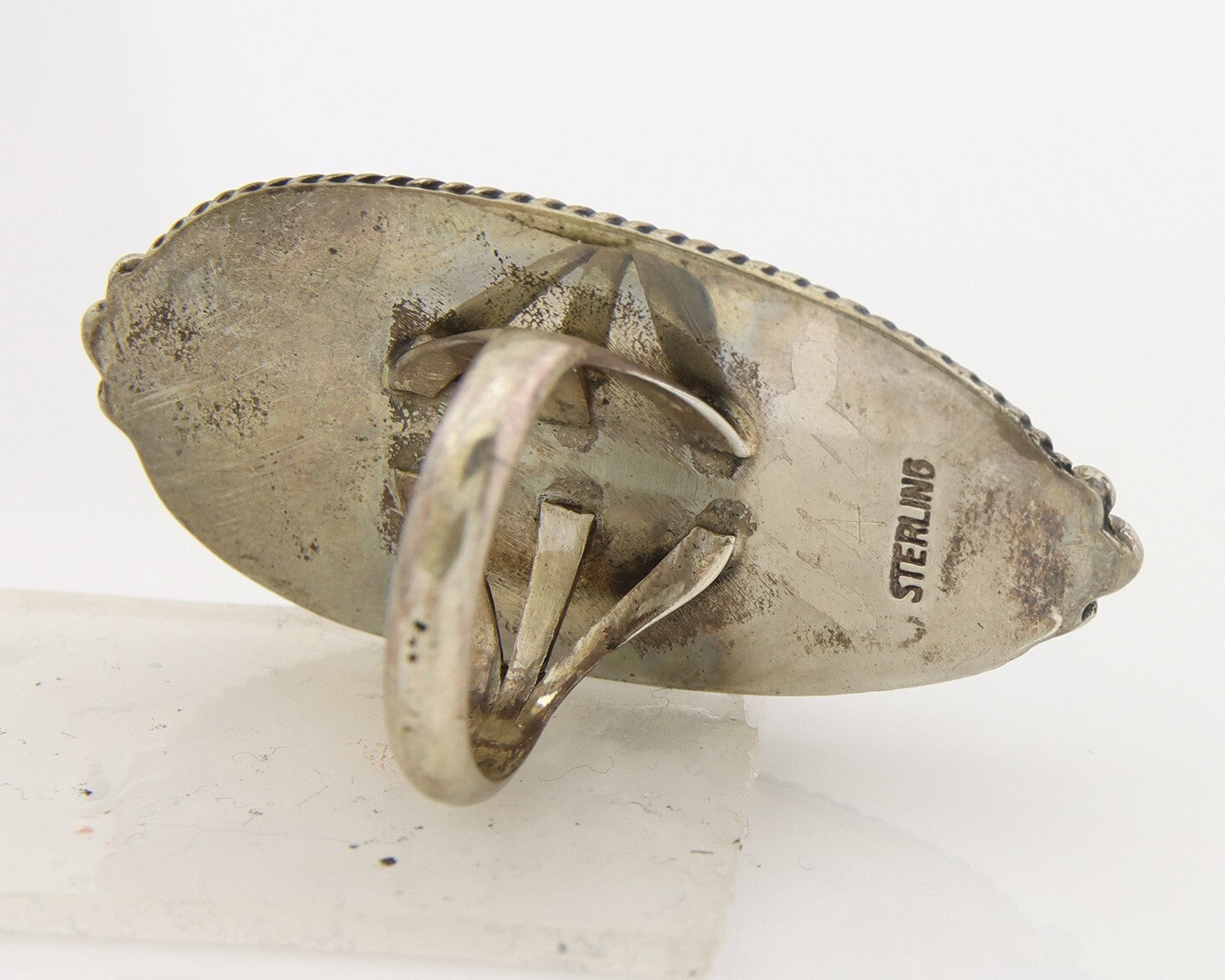 Navajo Ring 925 Sterling Spiderweb Blue Turquoise Native Artist C.80's Size 7.5