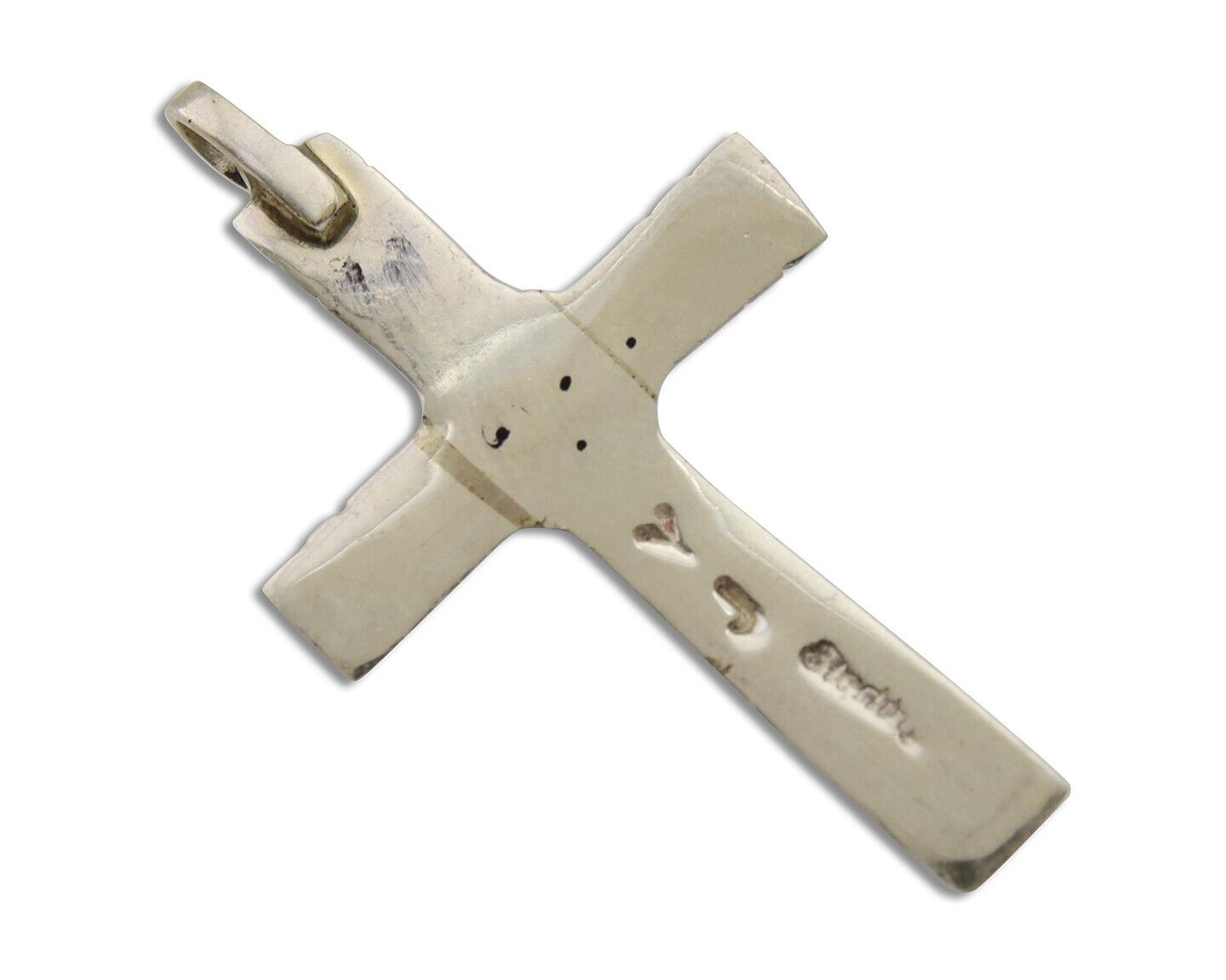 Navajo Sand Cast Cross Pendant 925 Silver Turquoise Artist Signed J Yazzie C.80s