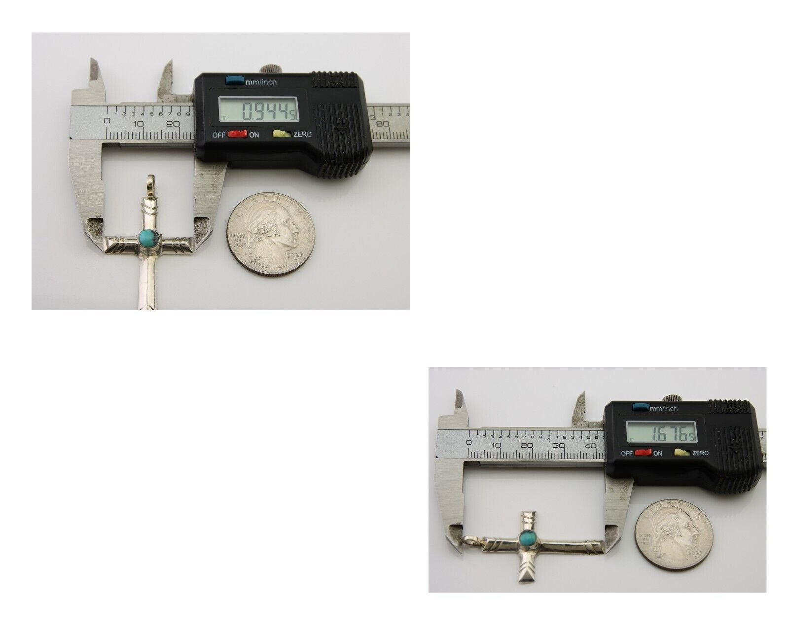 Navajo Sand Cast Cross Pendant 925 Silver Turquoise Artist Signed J Yazzie C.80s
