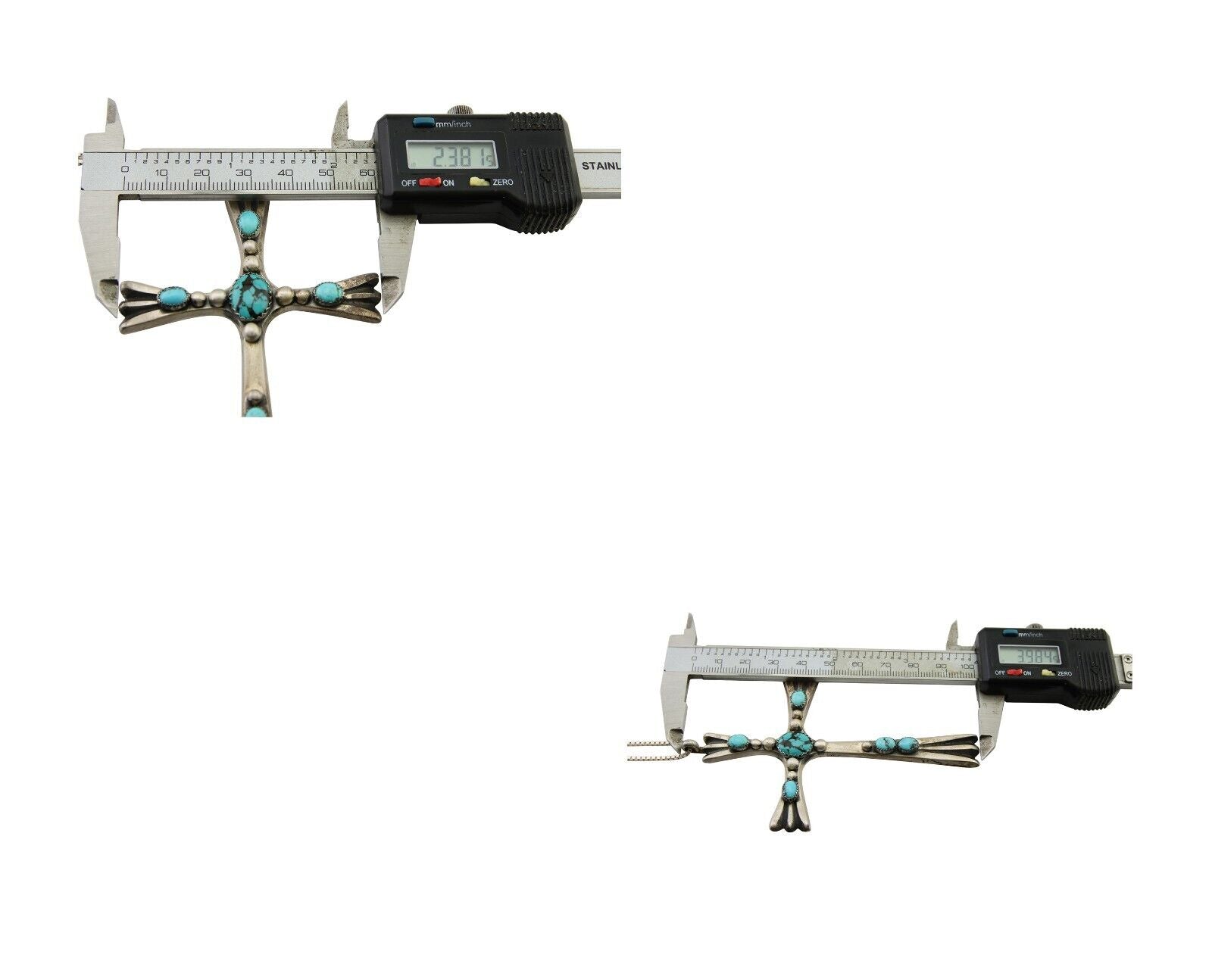 Navajo Sand Cast Cross Pendant 925 Silver Turquoise Signed RJ SILVERSMITHS C.80s