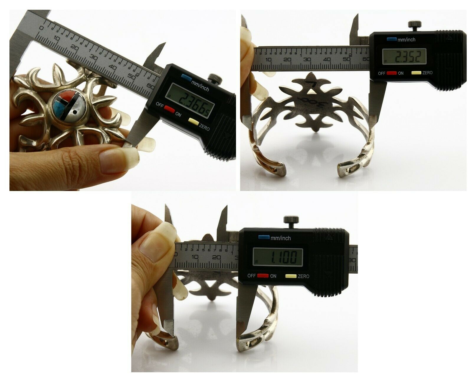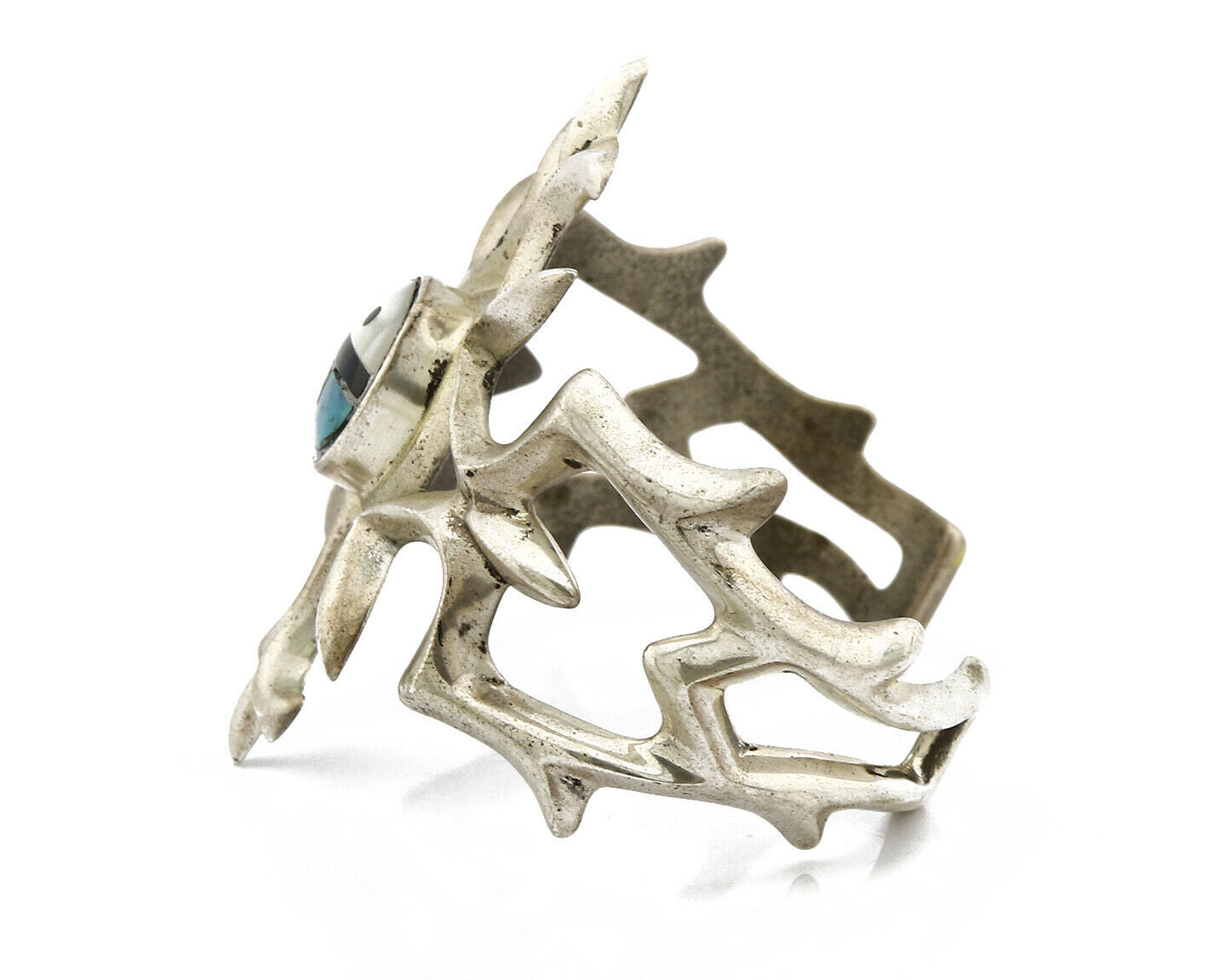 Navajo Sand Cast Jet Coral Turquoise & MOP Inlaid .925 Silver Cuff Bracelet