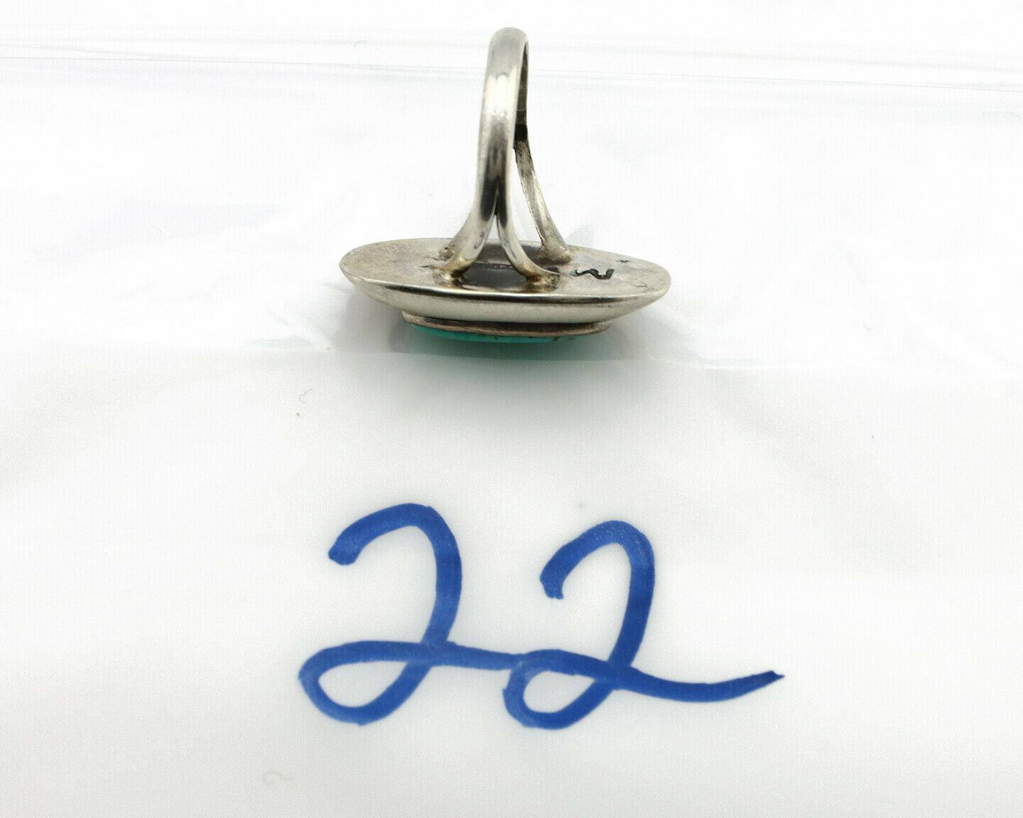 Navajo Shadow Box Ring .925 Silver Kingman Turquoise Signed M Montoya C80s