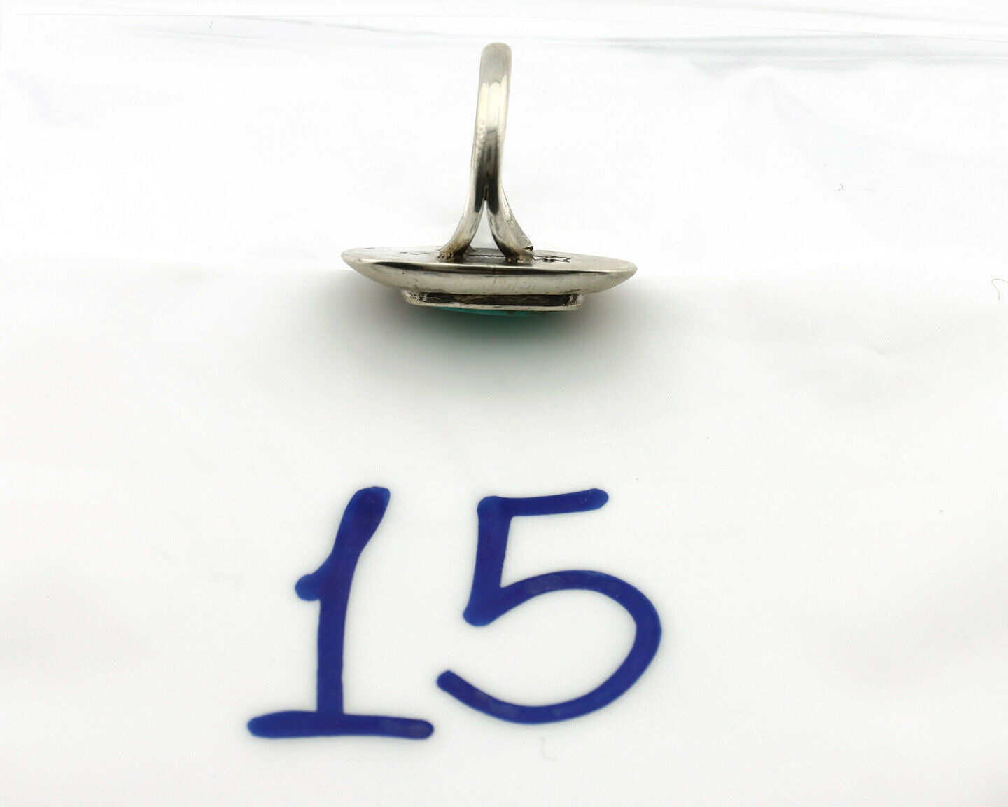 Navajo Shadow Box Ring .925 Silver Kingman Turquoise Signed M Montoya C80s