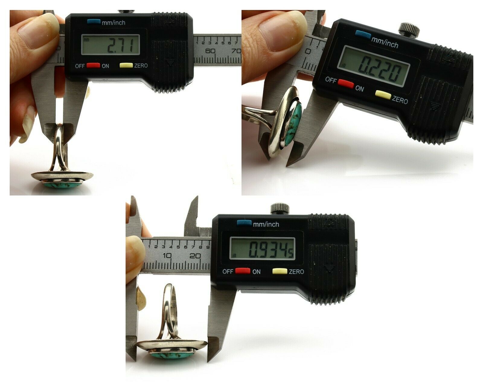Navajo Shadow Box Ring .925 Silver Kingman Turquoise Signed M Montoya C80s