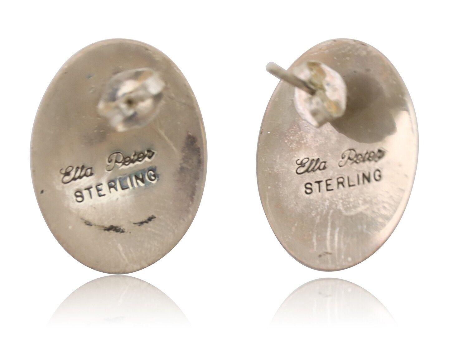 Navajo Shield Earrings 925 Silver Natural Malachite Signed Ella Peters C.80's
