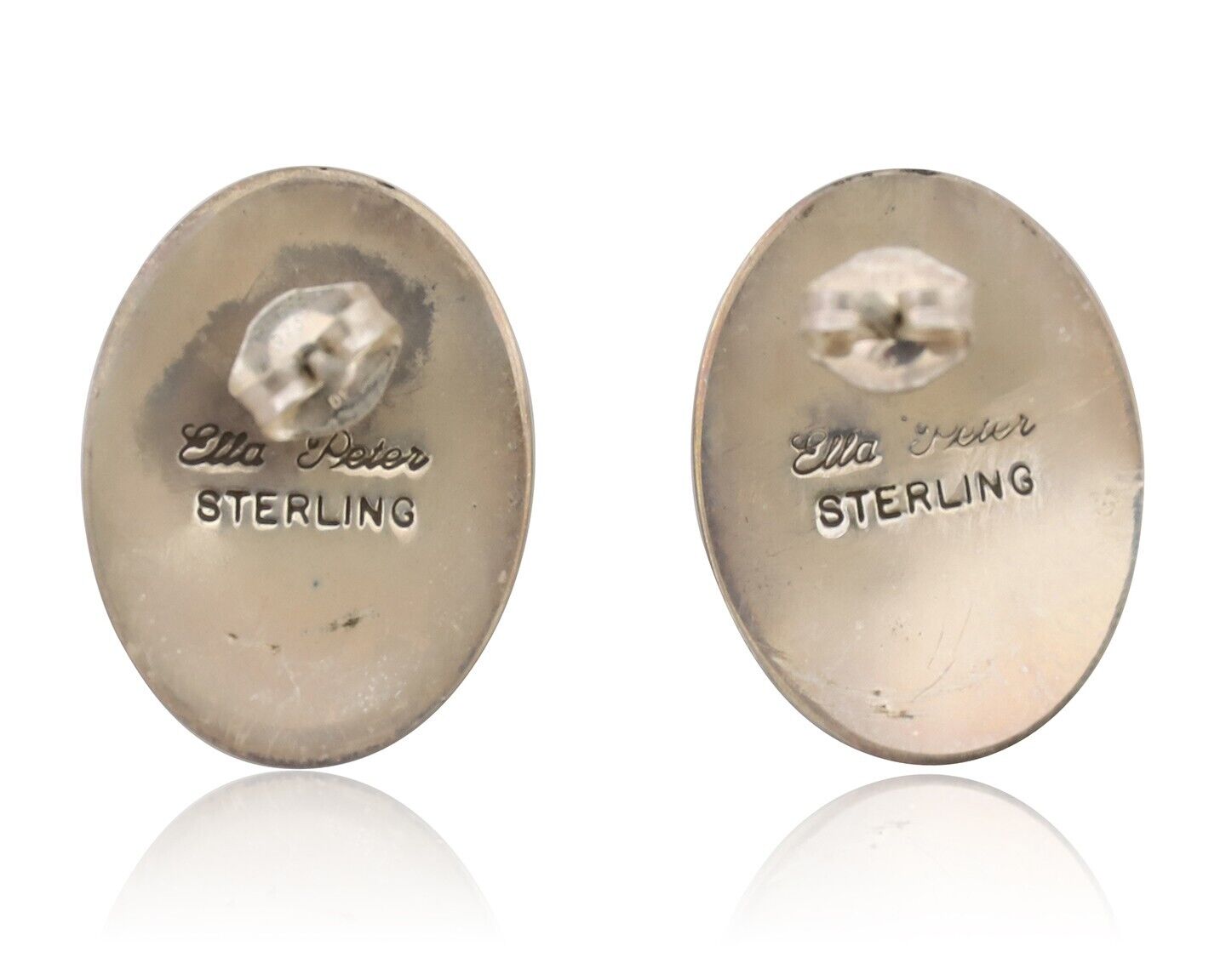 Navajo Shield Earrings 925 Silver Natural Malachite Signed Ella Peters C.80's