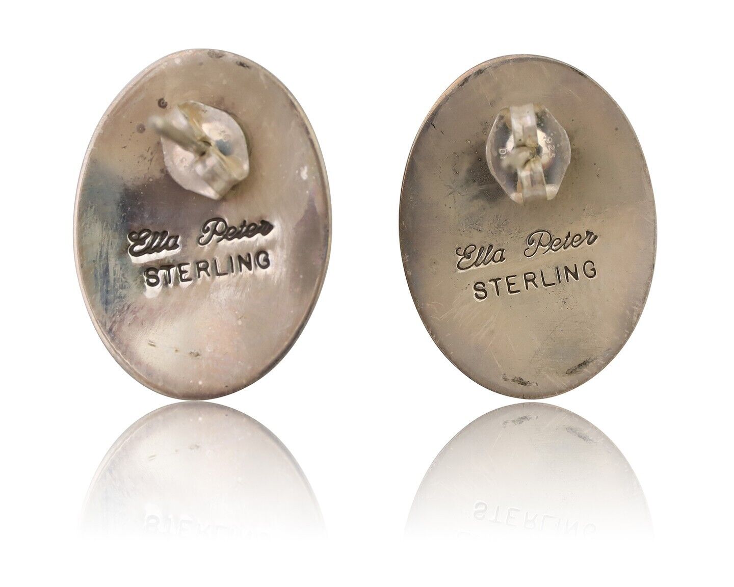 Navajo Shield Earrings 925 Silver Natural Malachite Signed Ella Peters C.80's