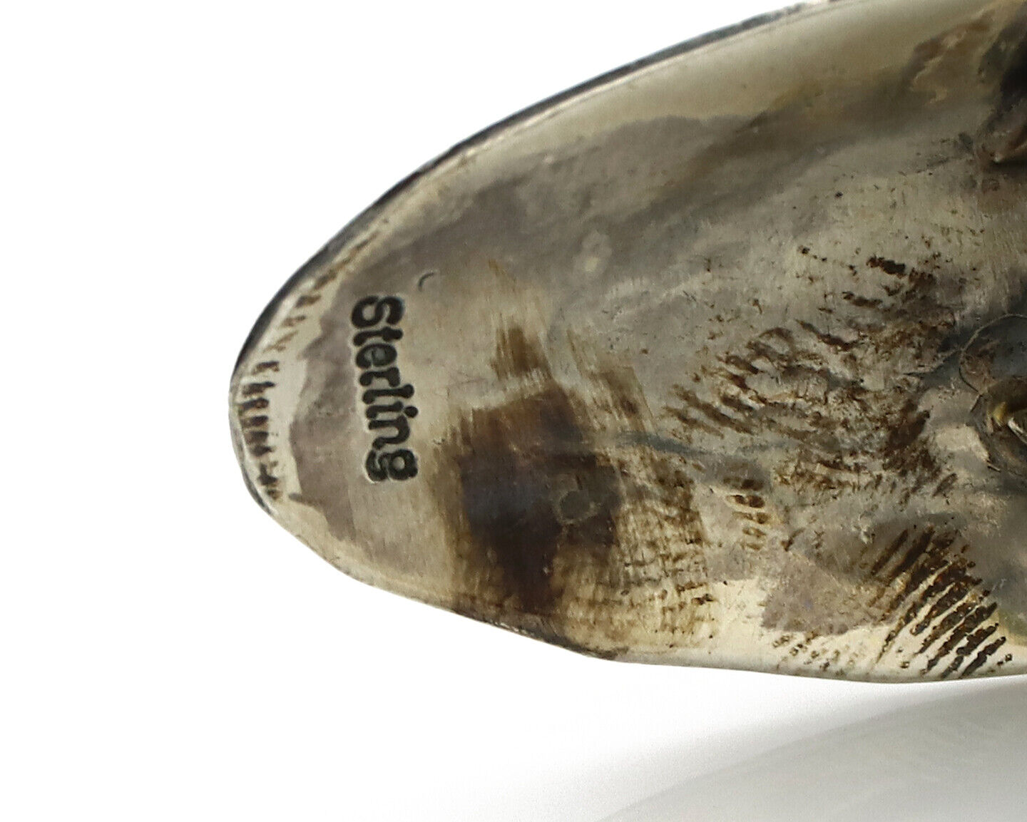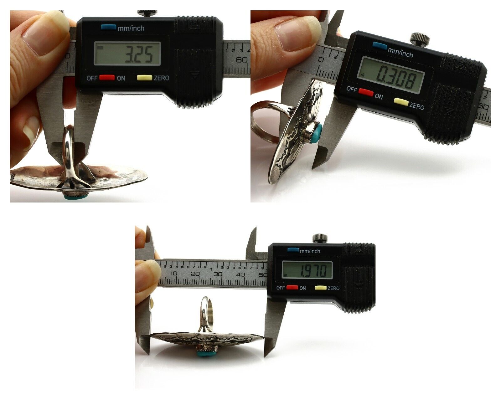 Navajo Shield Ring .925 Silver Blue Turquoise Hand Stamped Native Artist C.80's