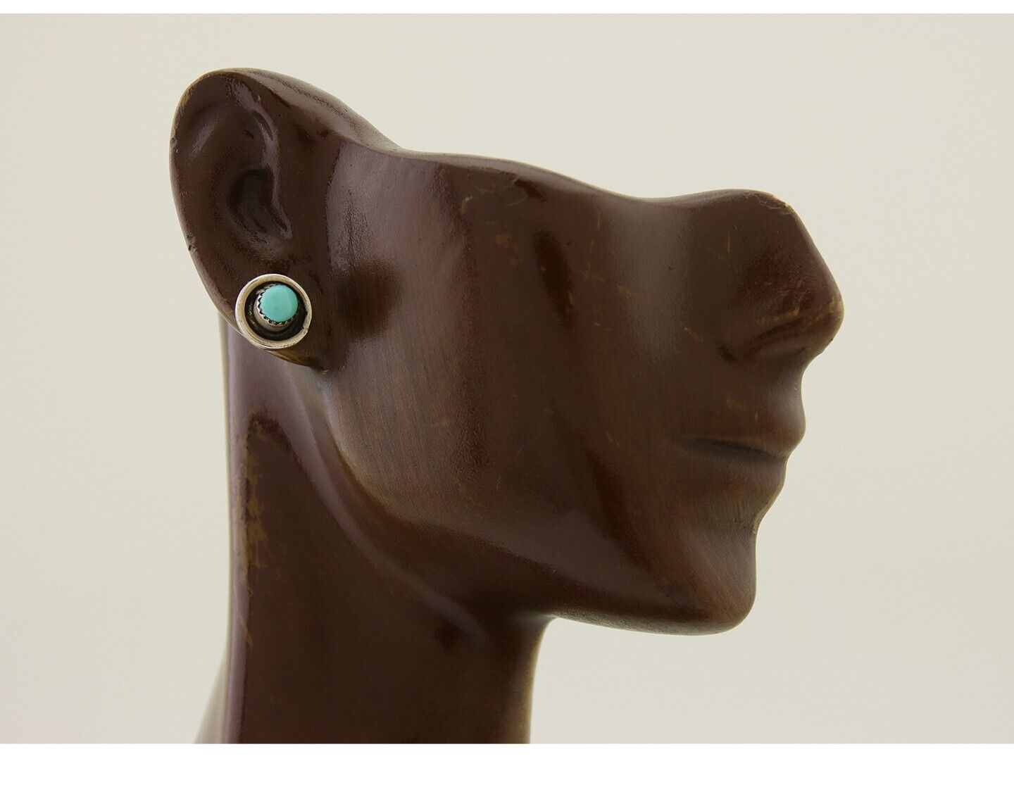 Navajo Snake Eye Earrings 925 Silver Blue Turquoise Native American Artist C.80s