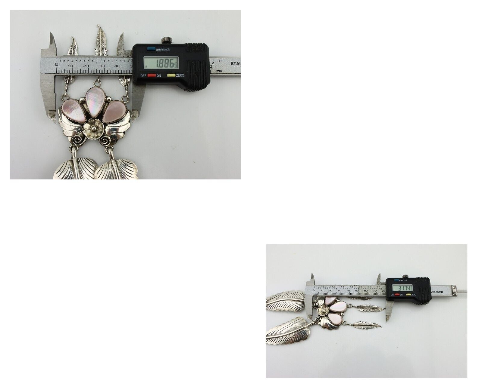 Navajo Squash Necklace 925 Silver Natural Pink Mussel Signed Harrison Yazzie C80