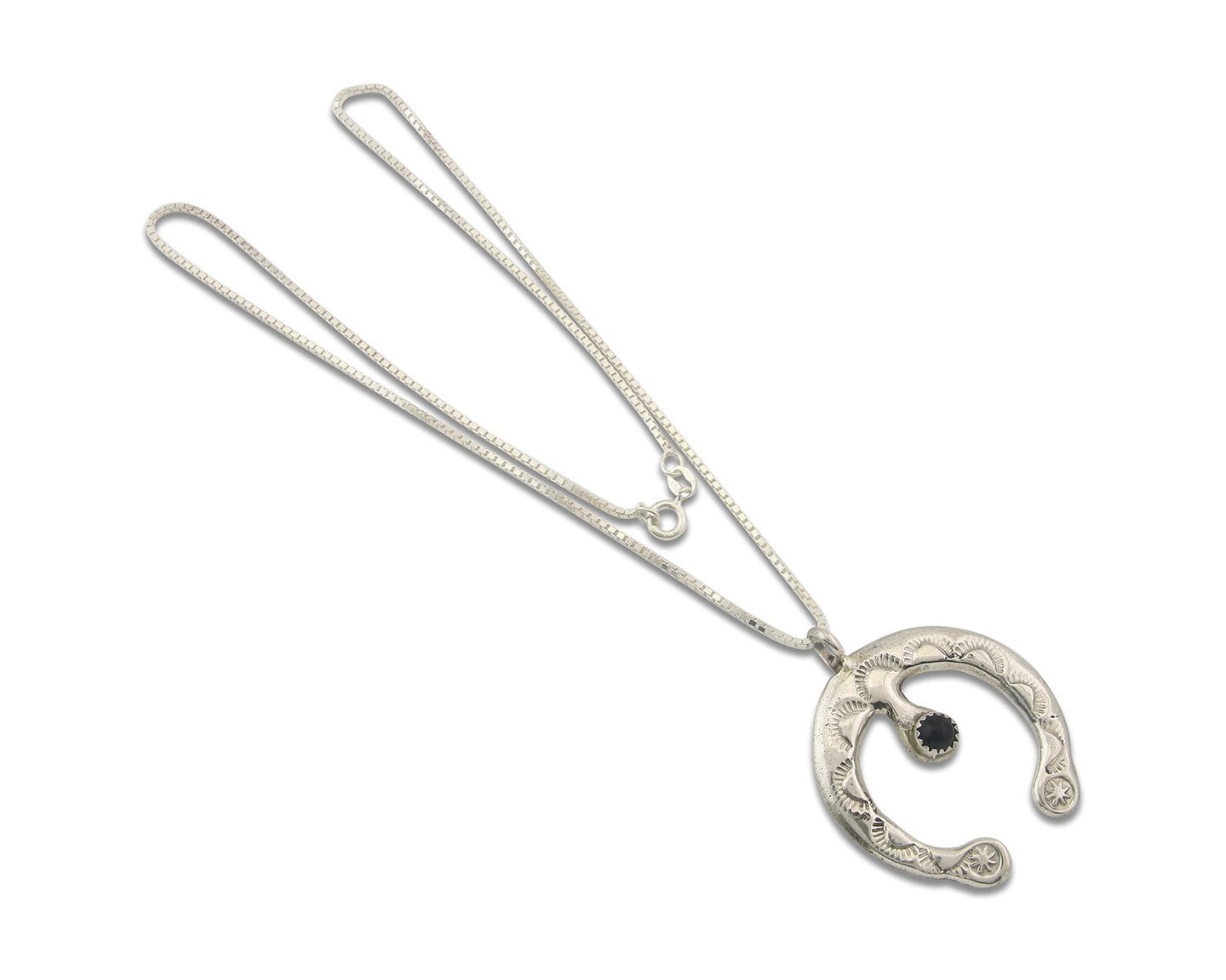Navajo Sterling Silver Necklace Onyx Sand Cast Authentic Vintage Native American