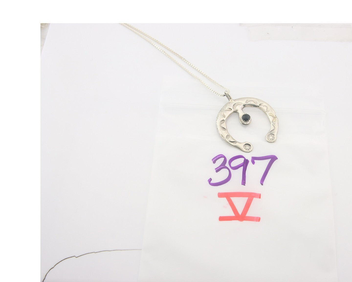 Navajo Sterling Silver Necklace Onyx Sand Cast Authentic Vintage Native American