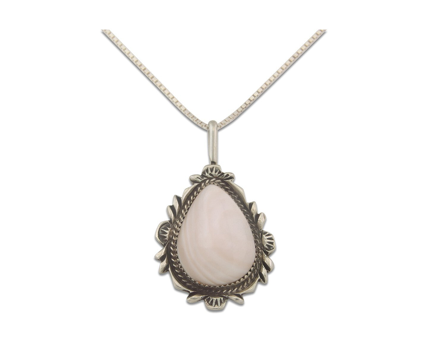 Navajo Sterling Silver Necklace Pink Muscle Authentic Vintage Sign Billie Eagle