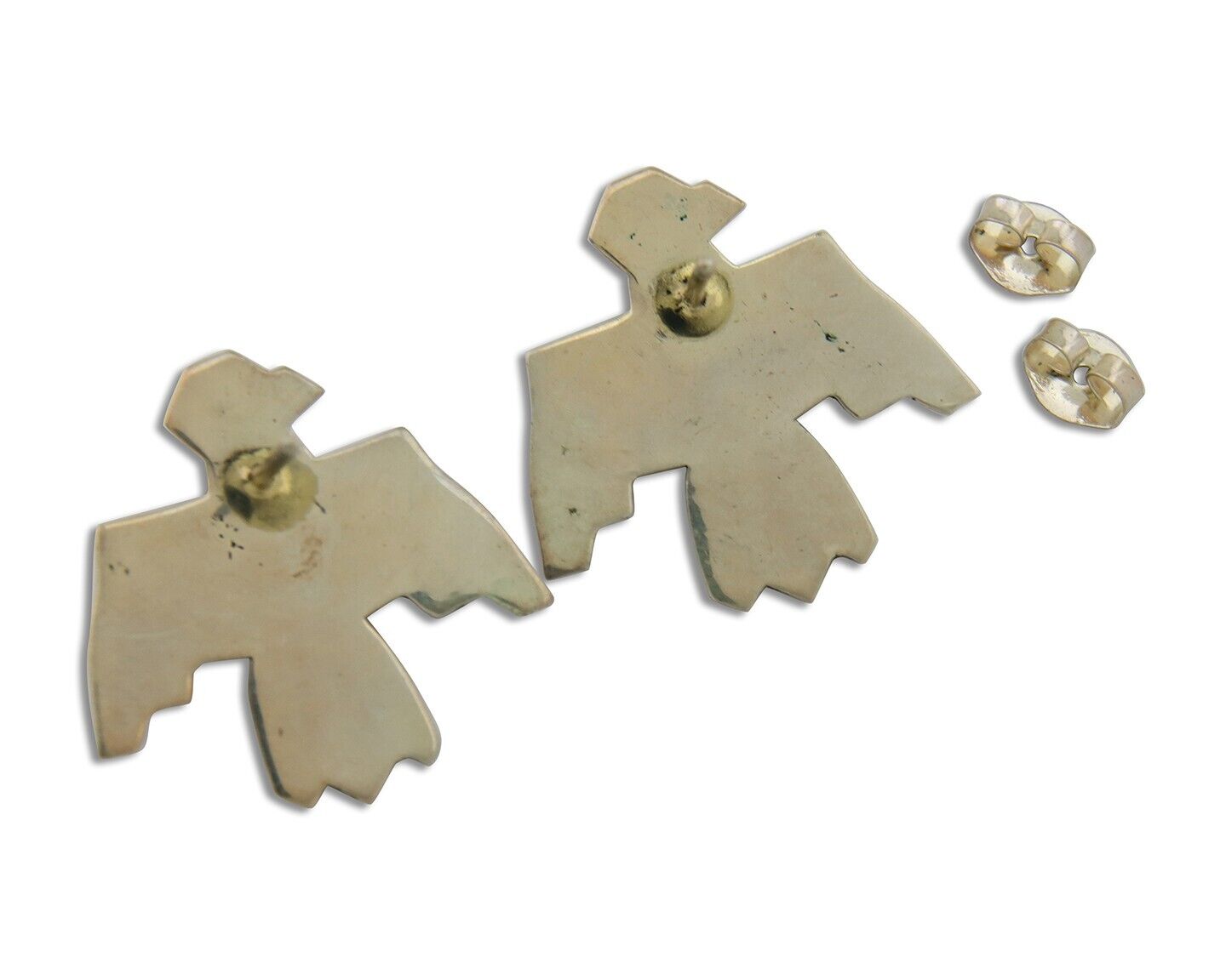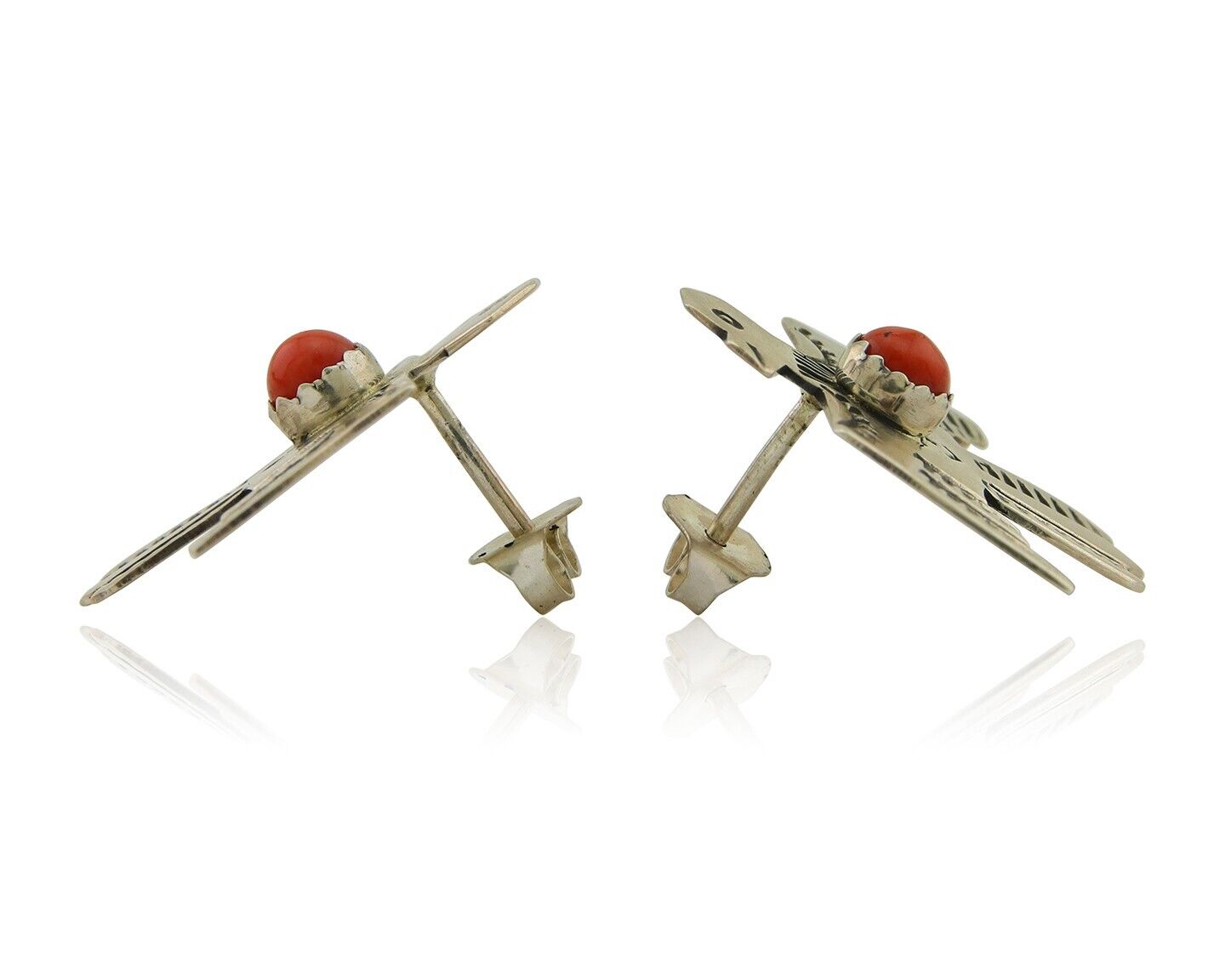 Navajo Thunderbird Earrings 925 Silver Natural Red Coral Native Artist C.80's