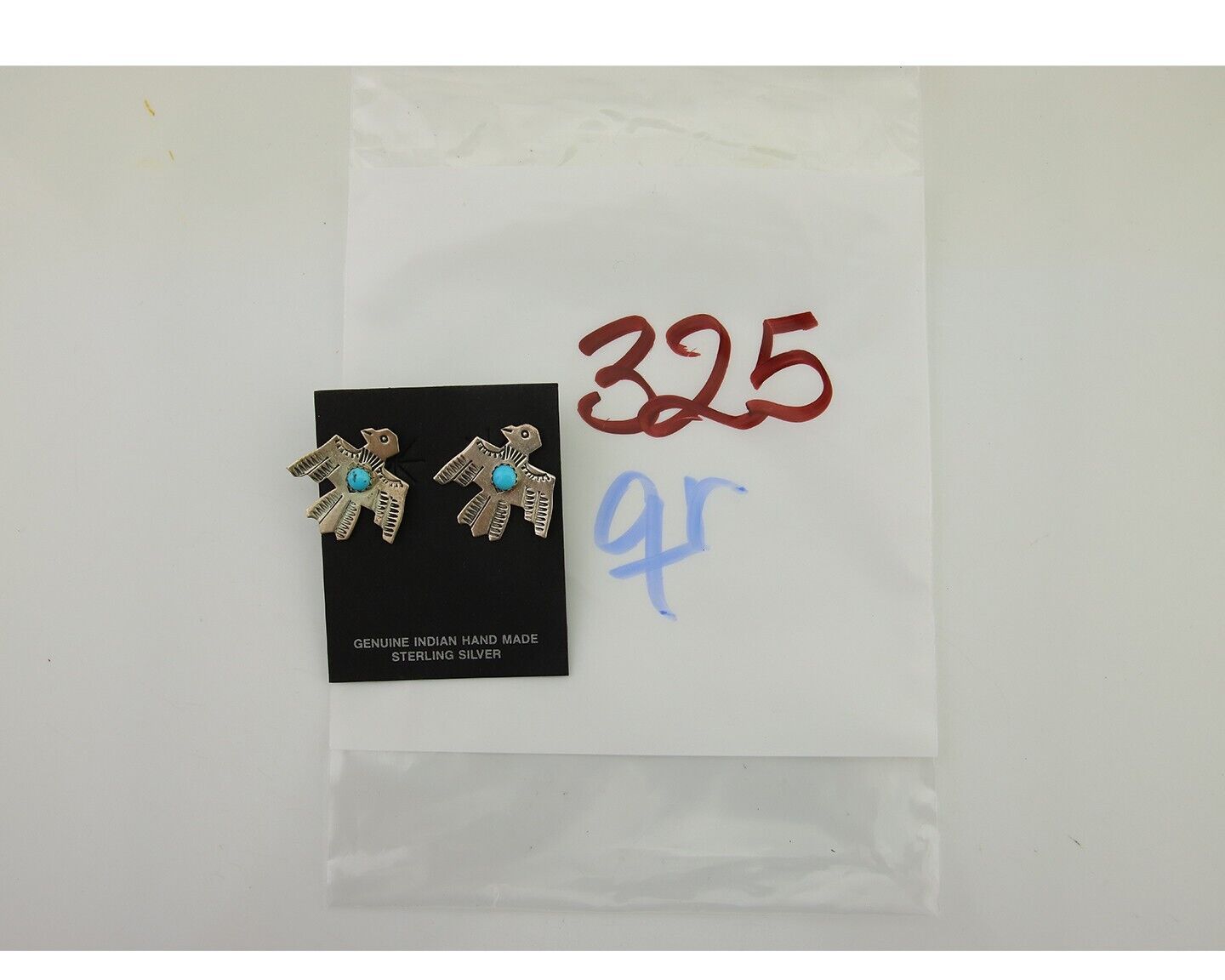 Navajo Thunderbird Earrings 925 Silver Natural Turquoise Native Artist C.80's