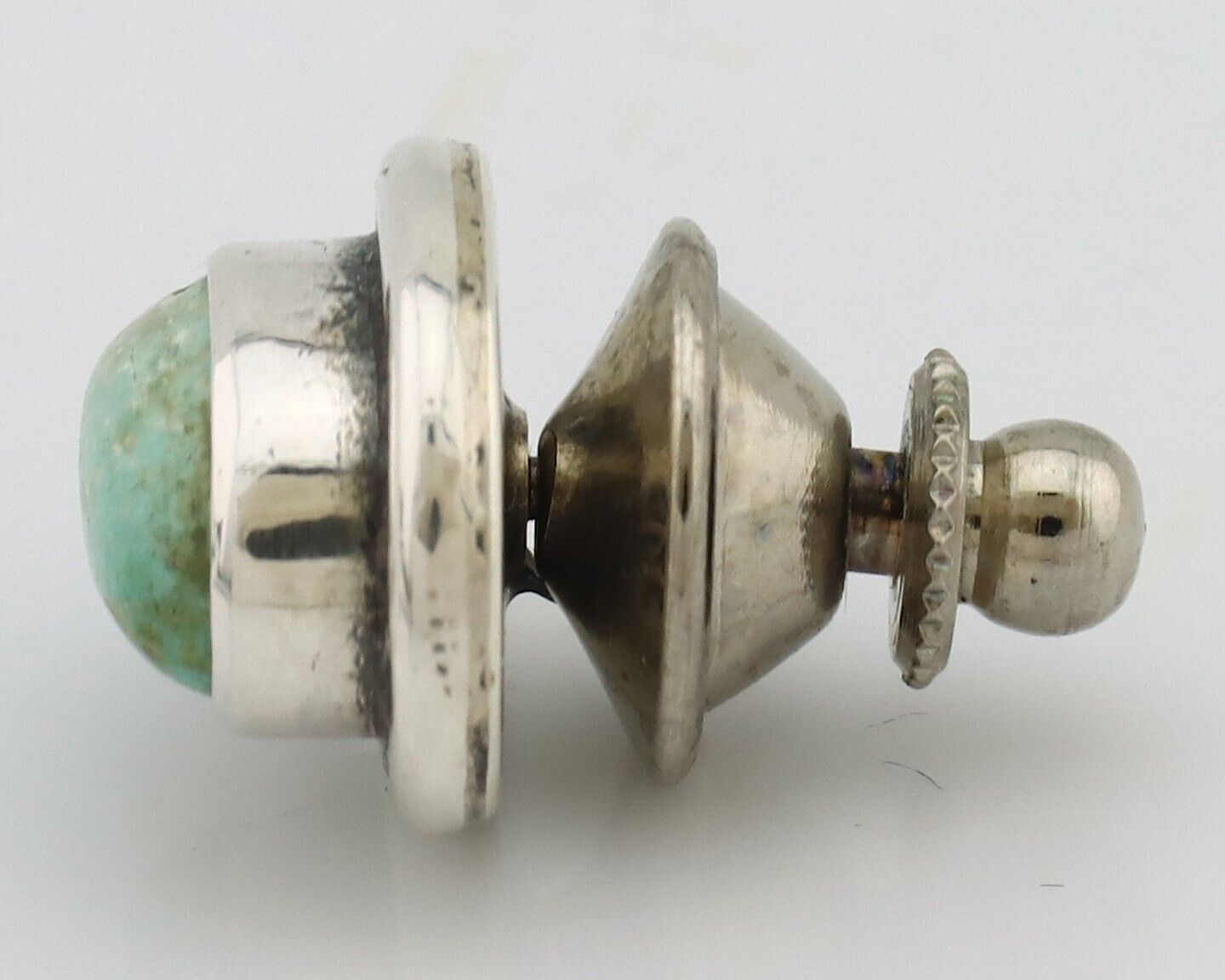 Navajo Tie Tack 925 Silver Natural Mined Turquoise Native American Artist C.80's