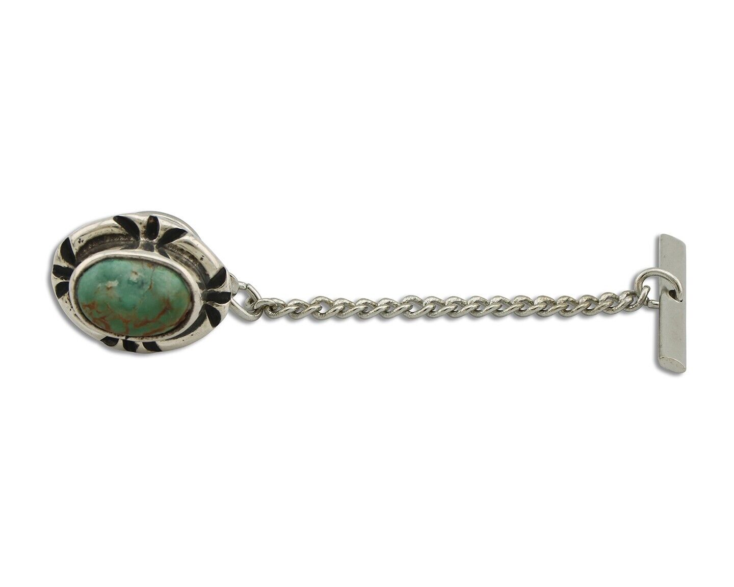 Navajo Tie Tack 925 Silver Natural Mined Turquoise Native American Artist C.80's