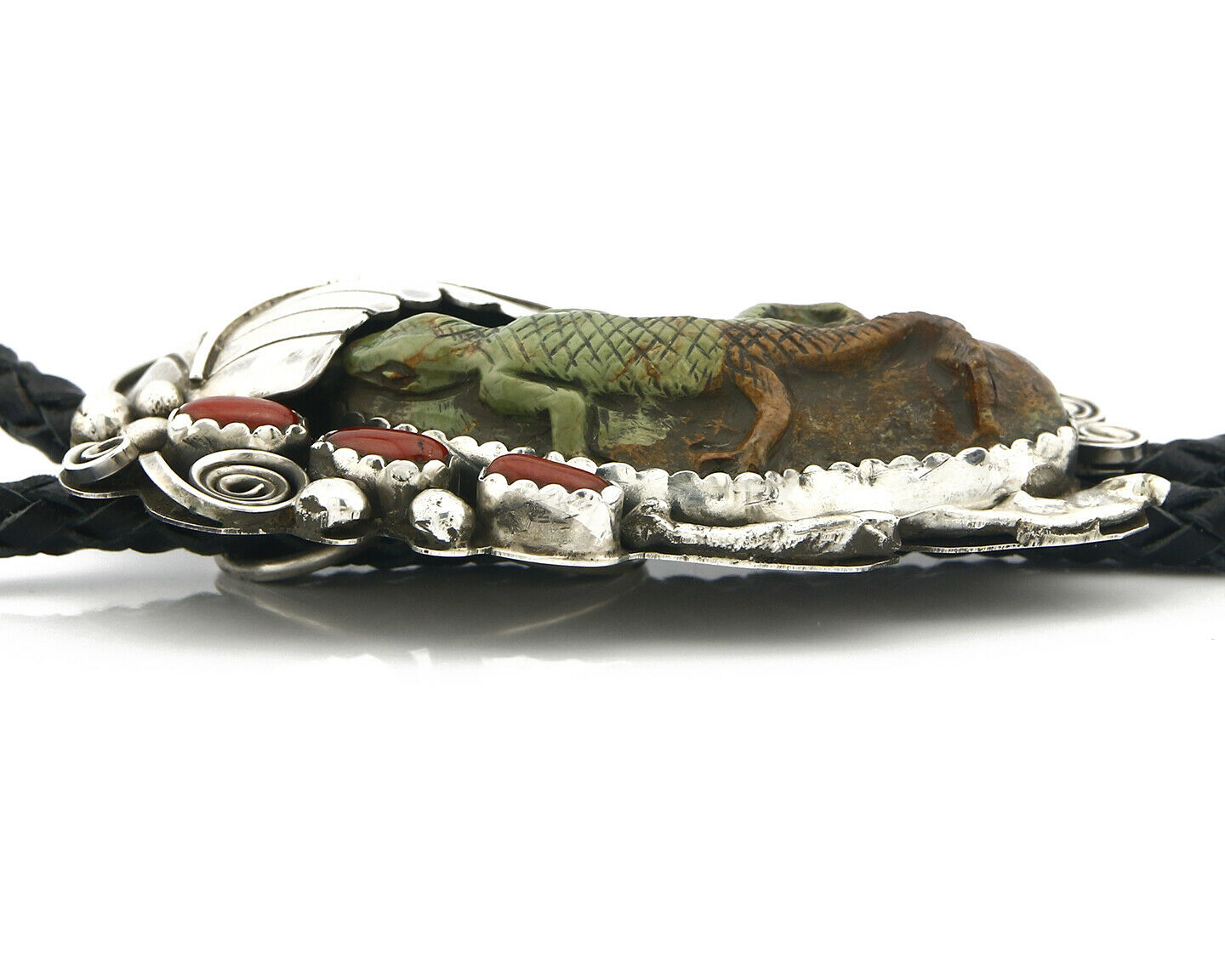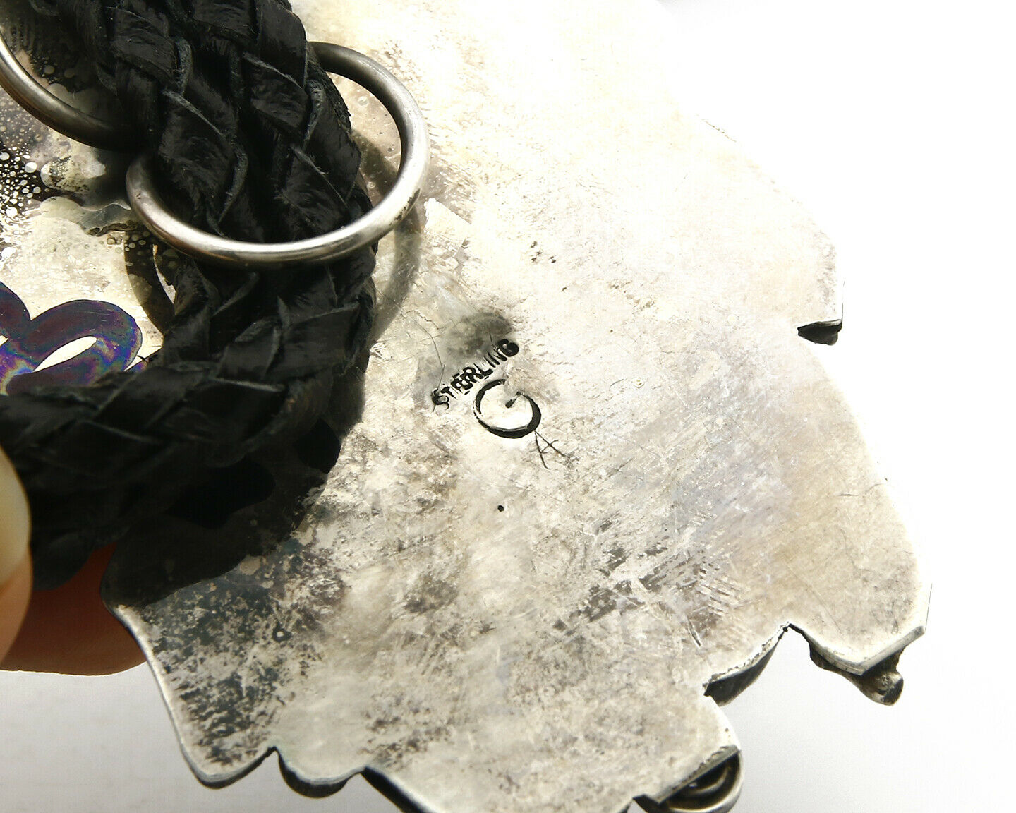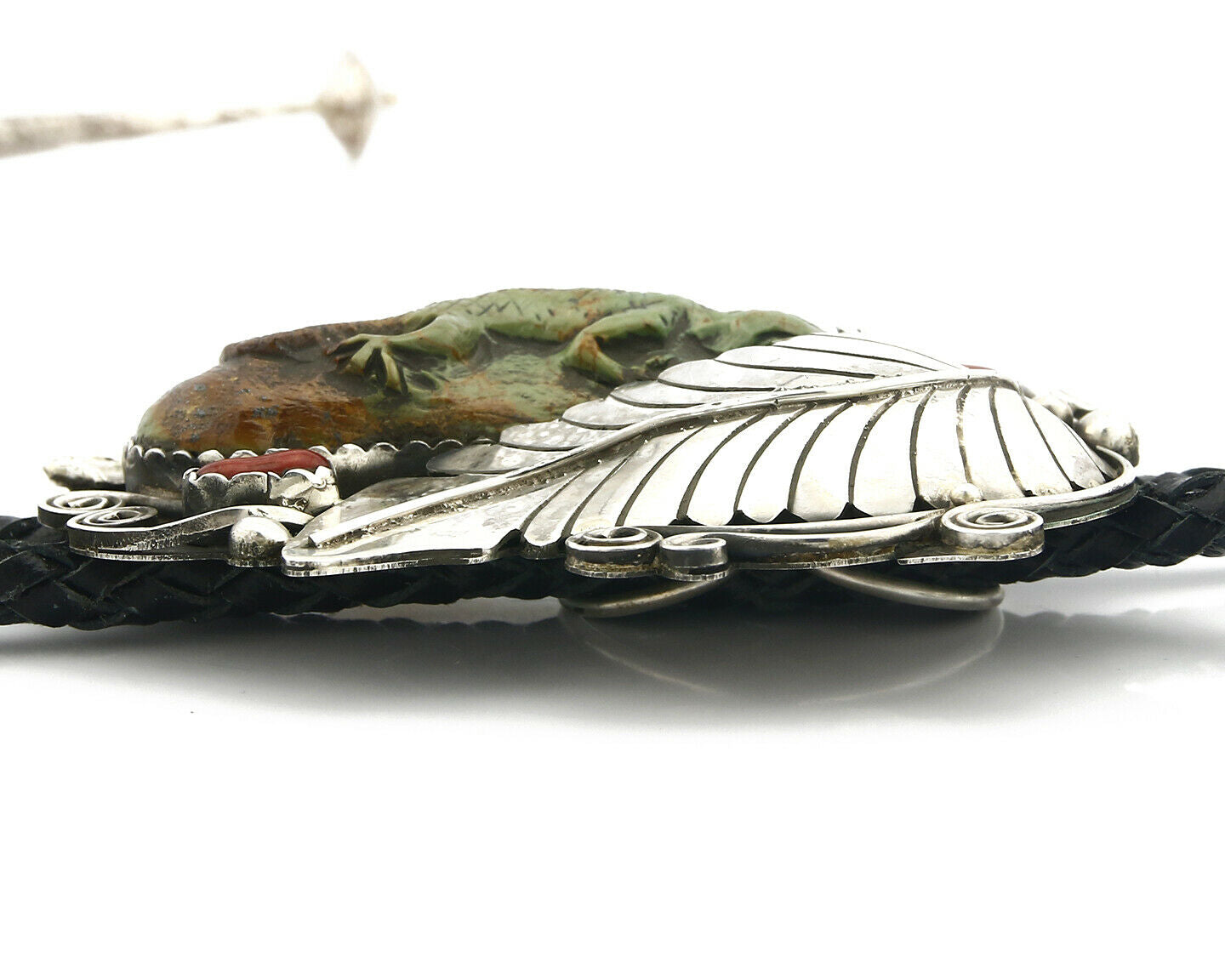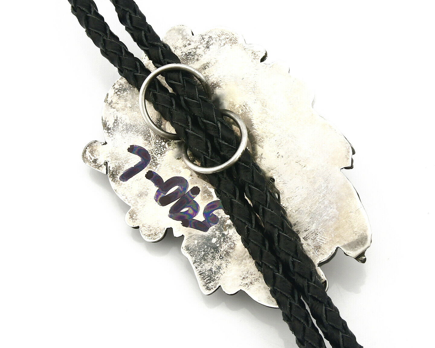 Navajo Turquoise Bolo Tie .925 Silver Handmade C.80's Turquoise Signed Gomez