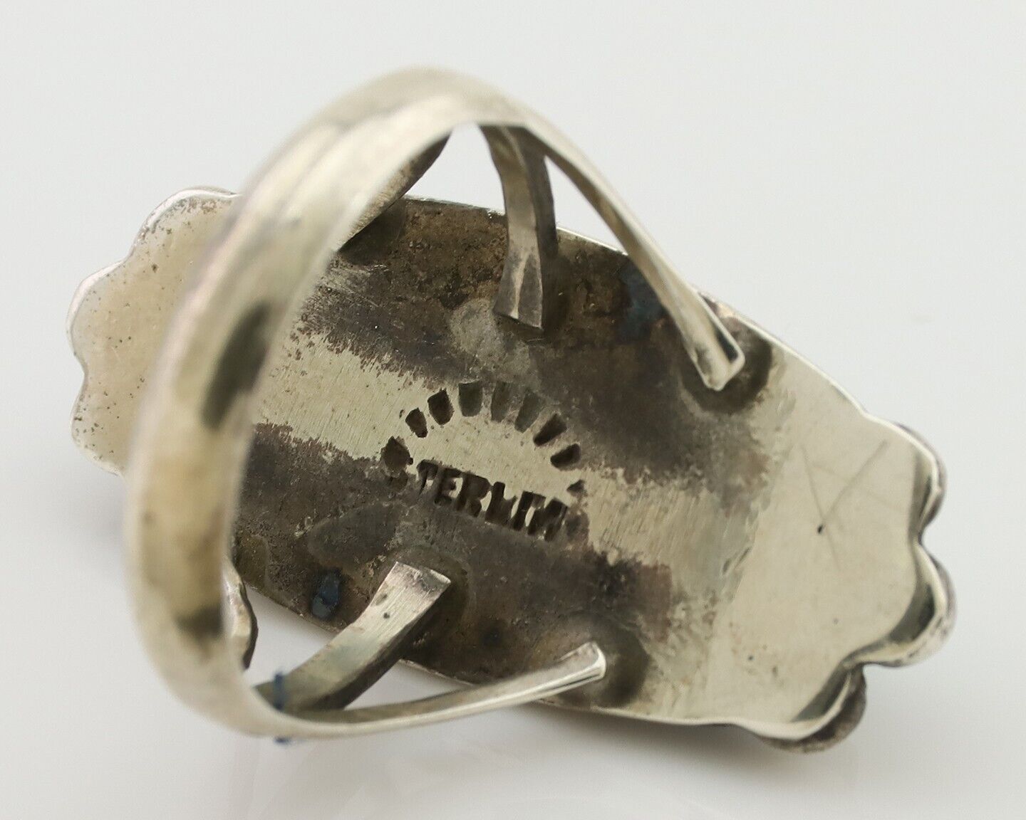 Navajo Turquoise Ring 925 Silver Native Artist Signed Sunrise Size 8.0 C.80's