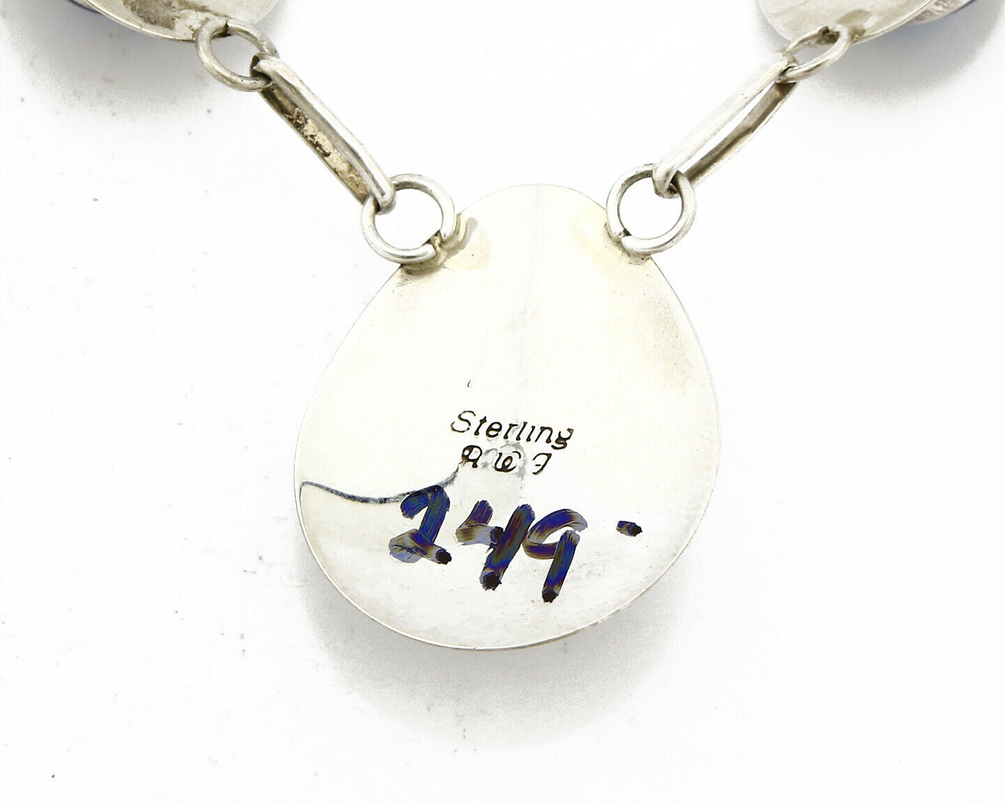 VTG Navajo Signed RWF .925 Silver & Gemstone Concho Inlaid Necklace