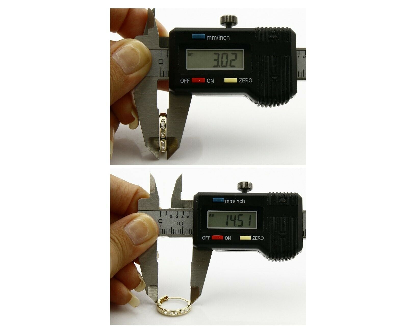 Women's 3.0mm x 16mm REAL 14k SOLID YELLOW GOLD Simulated Diamond Hoop