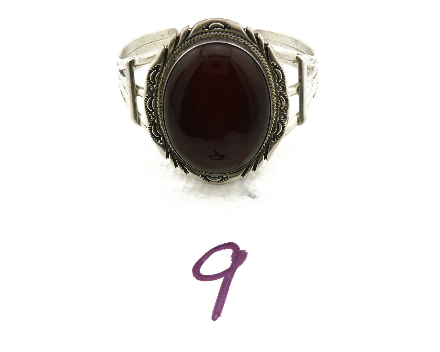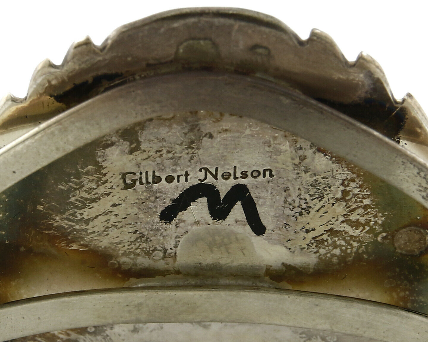 Women's Navajo Bracelet .925 Silver Natural Agate Cuff Artist Gilbert Nelson C80