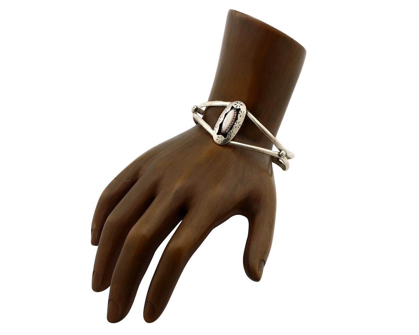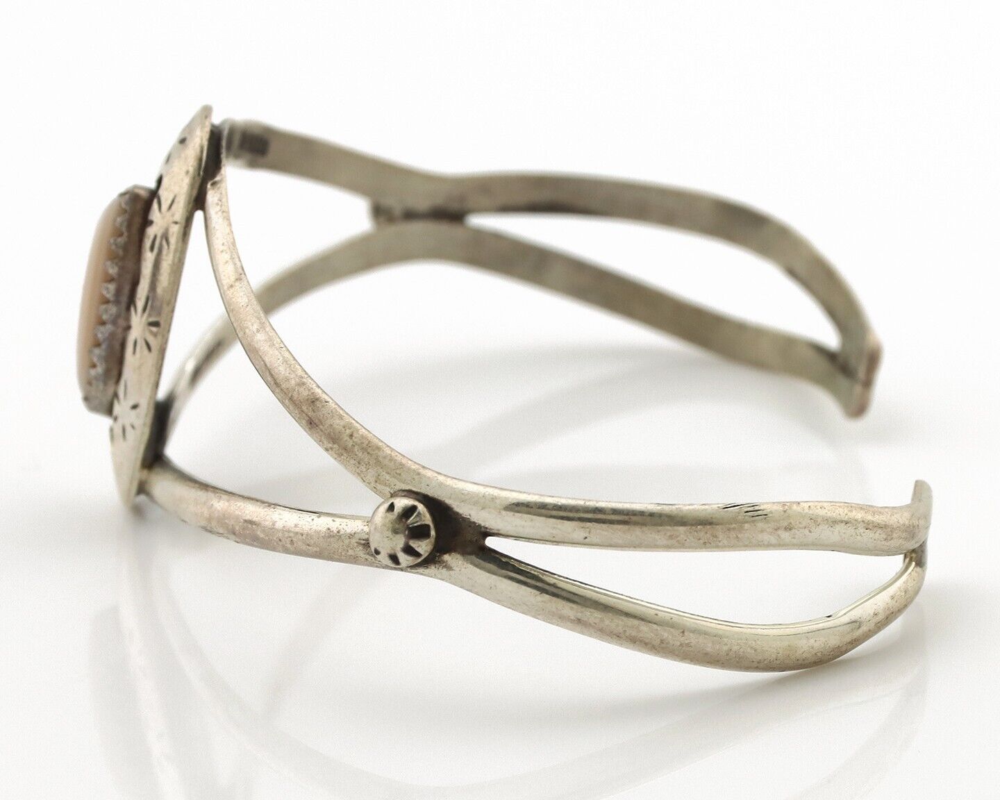 Women's Navajo Bracelet 925 Silver Pink Mussel Native American Artist Signed IJC