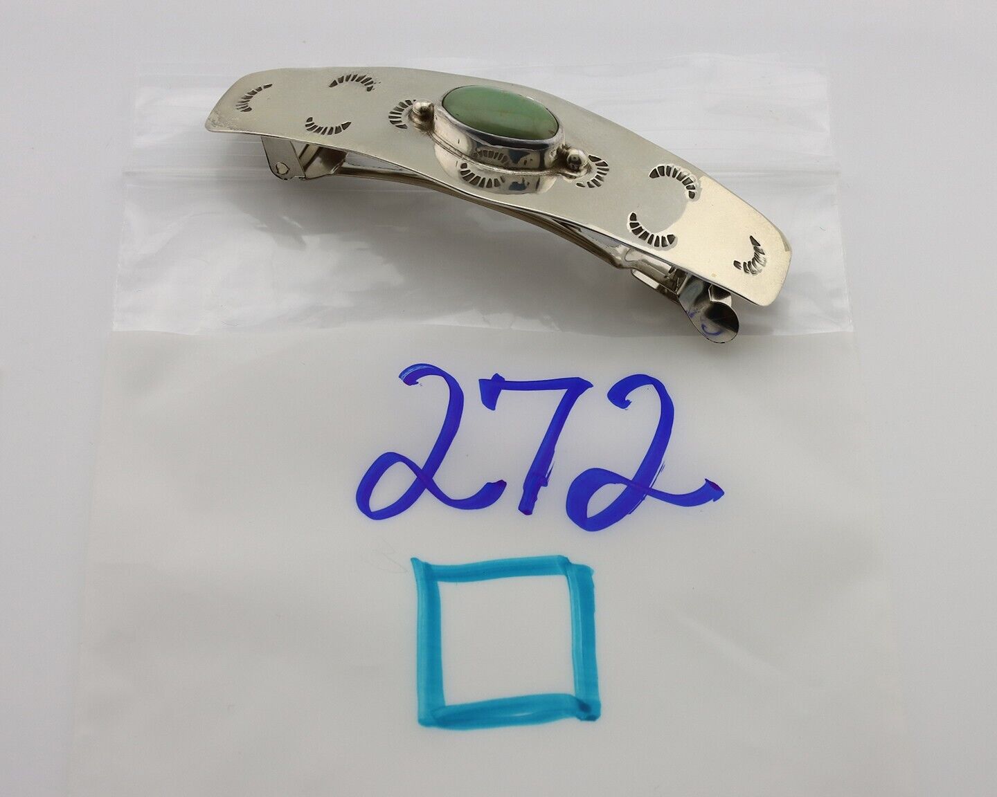 Women's Navajo Hair Clip Barrette Manassas Turquoise 925 Silver Native American