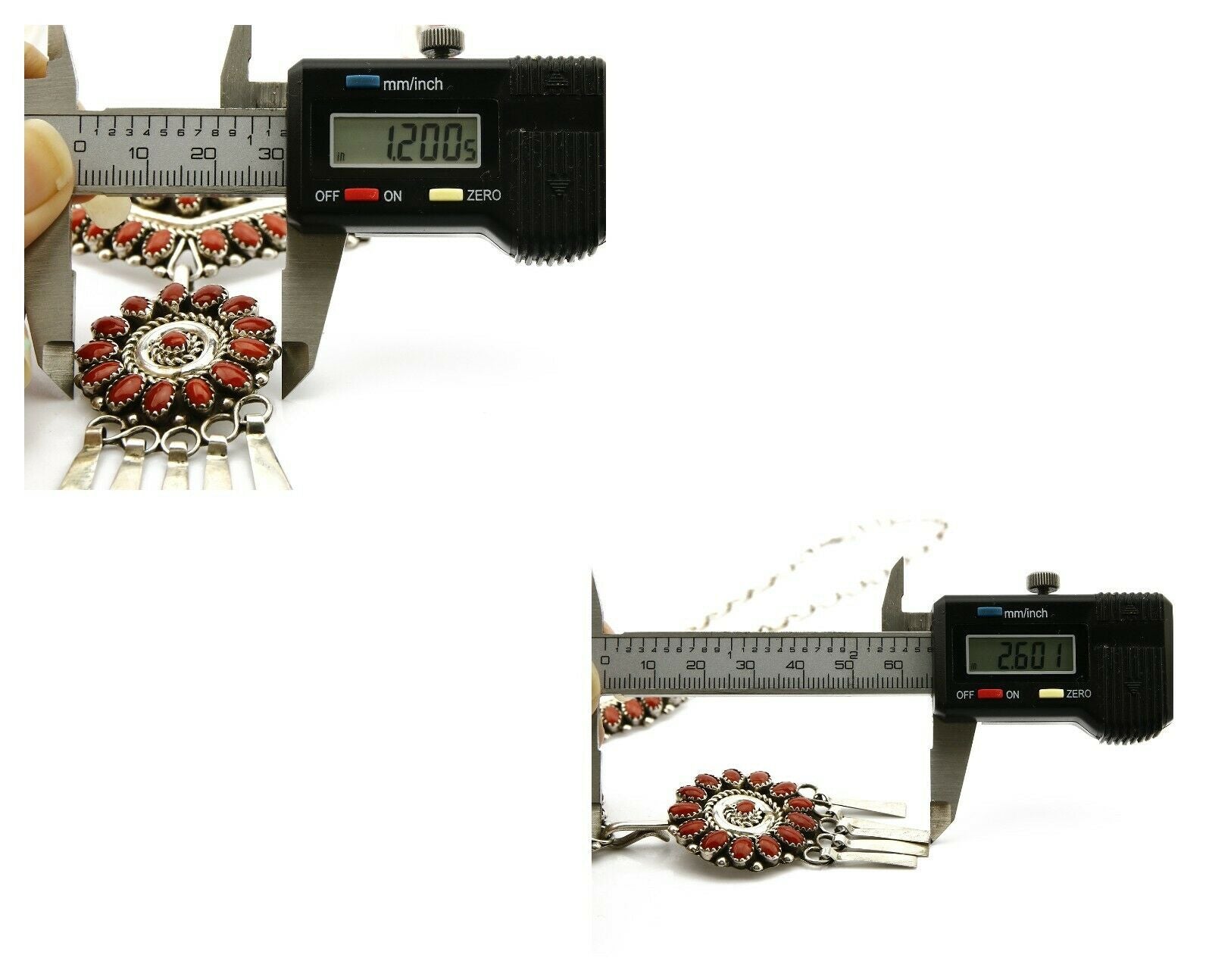 Women's Navajo Necklace .925 Silver Red Coral Handmade Signed NH 19 in Length