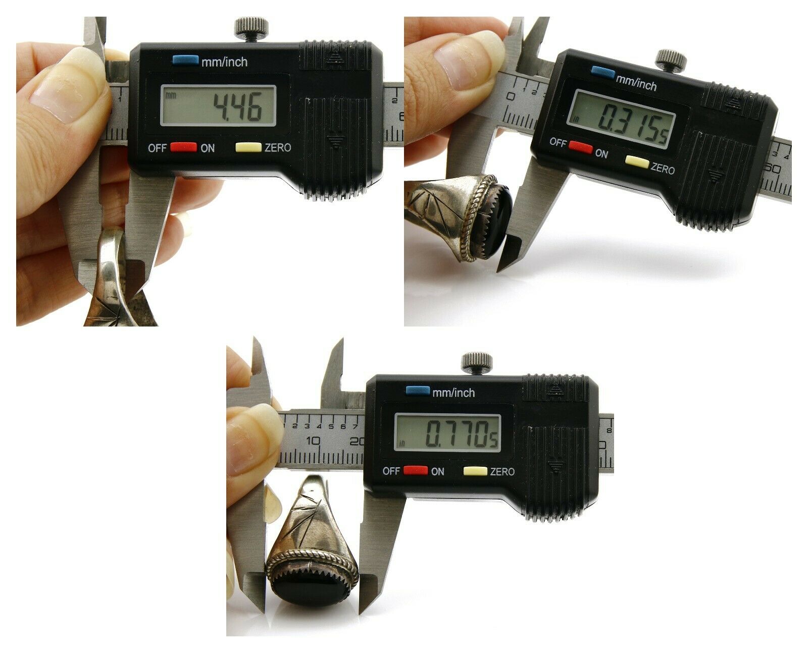 Women's Navajo Ring .925 SOLID Silver Hand Stamped Black Onyx Circa 1980's
