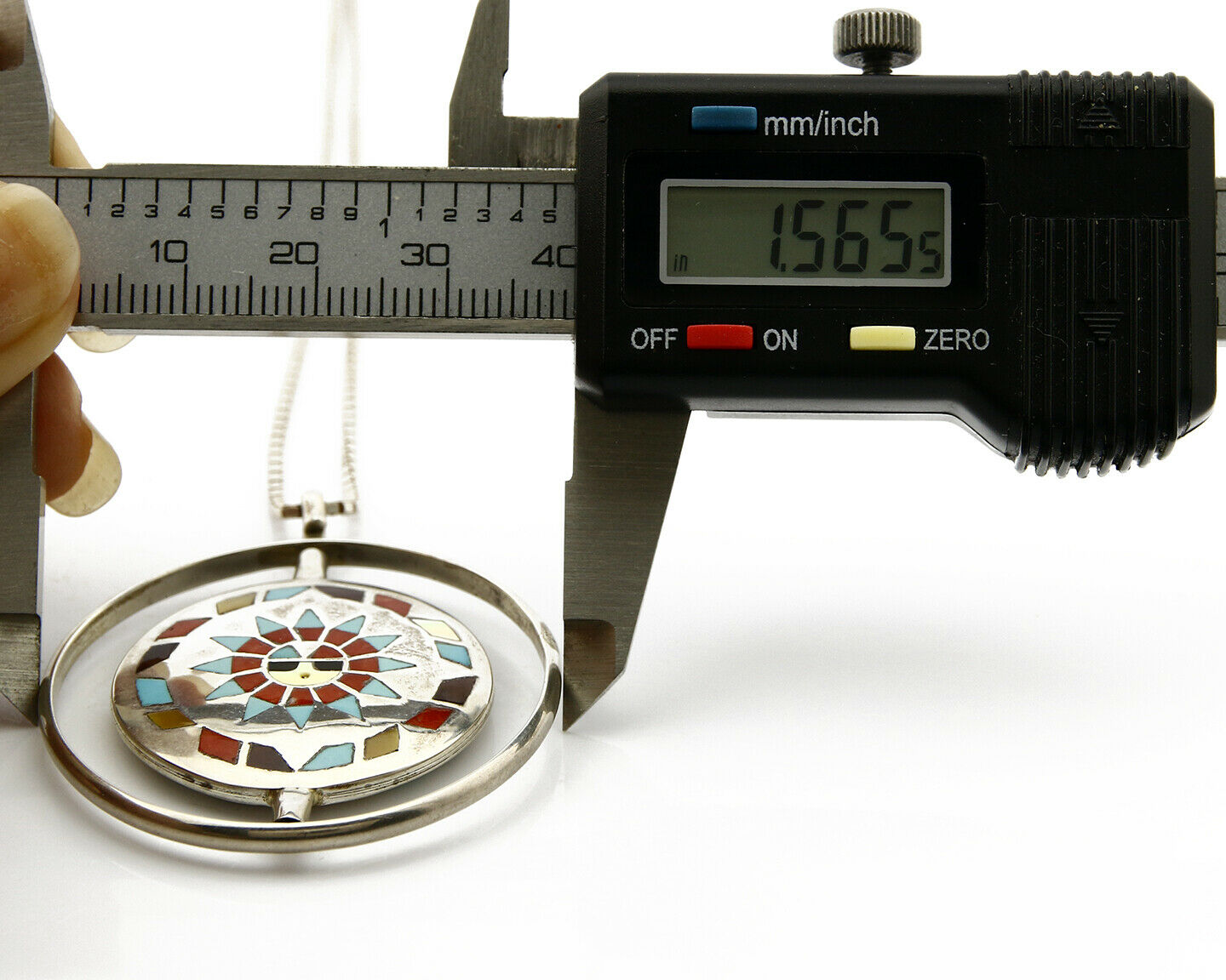 Women's Navajo Spinner Pendant .925 Silver & Inlaid Gemstone Necklace