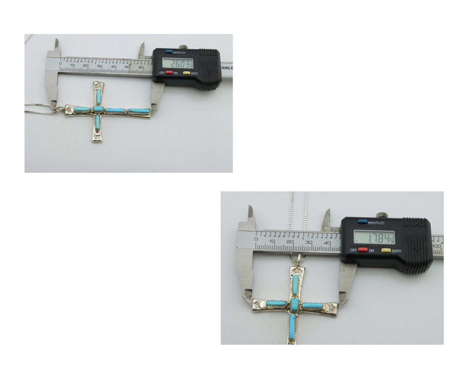Zuni Cross Necklace 925 Silver Blue Turquoise Signed L IULI C.80's