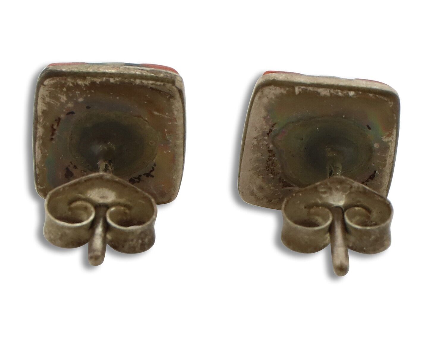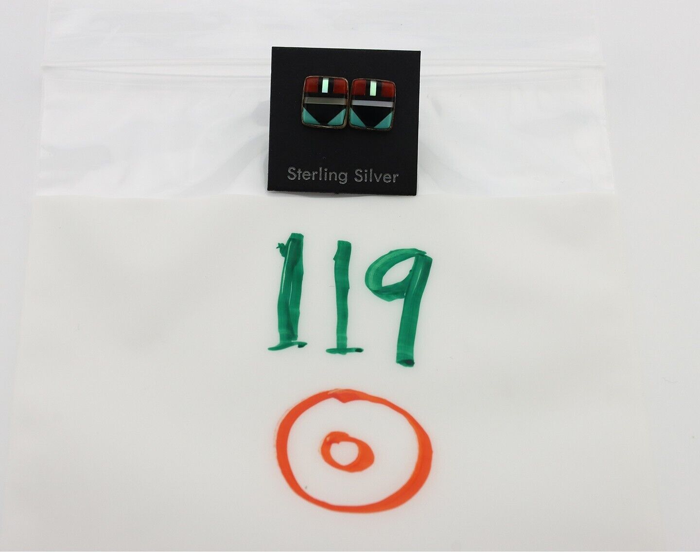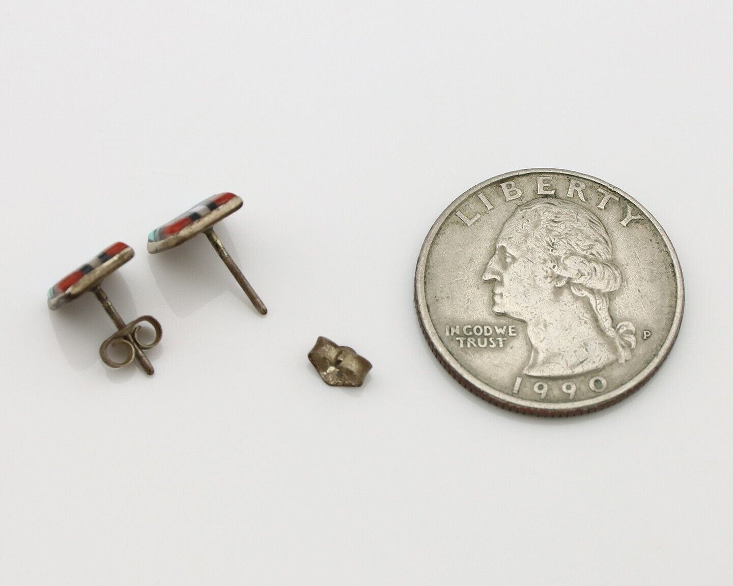 Zuni Earrings 925 Silver Natural Gemstones & Turquoise Native Artist C.80's