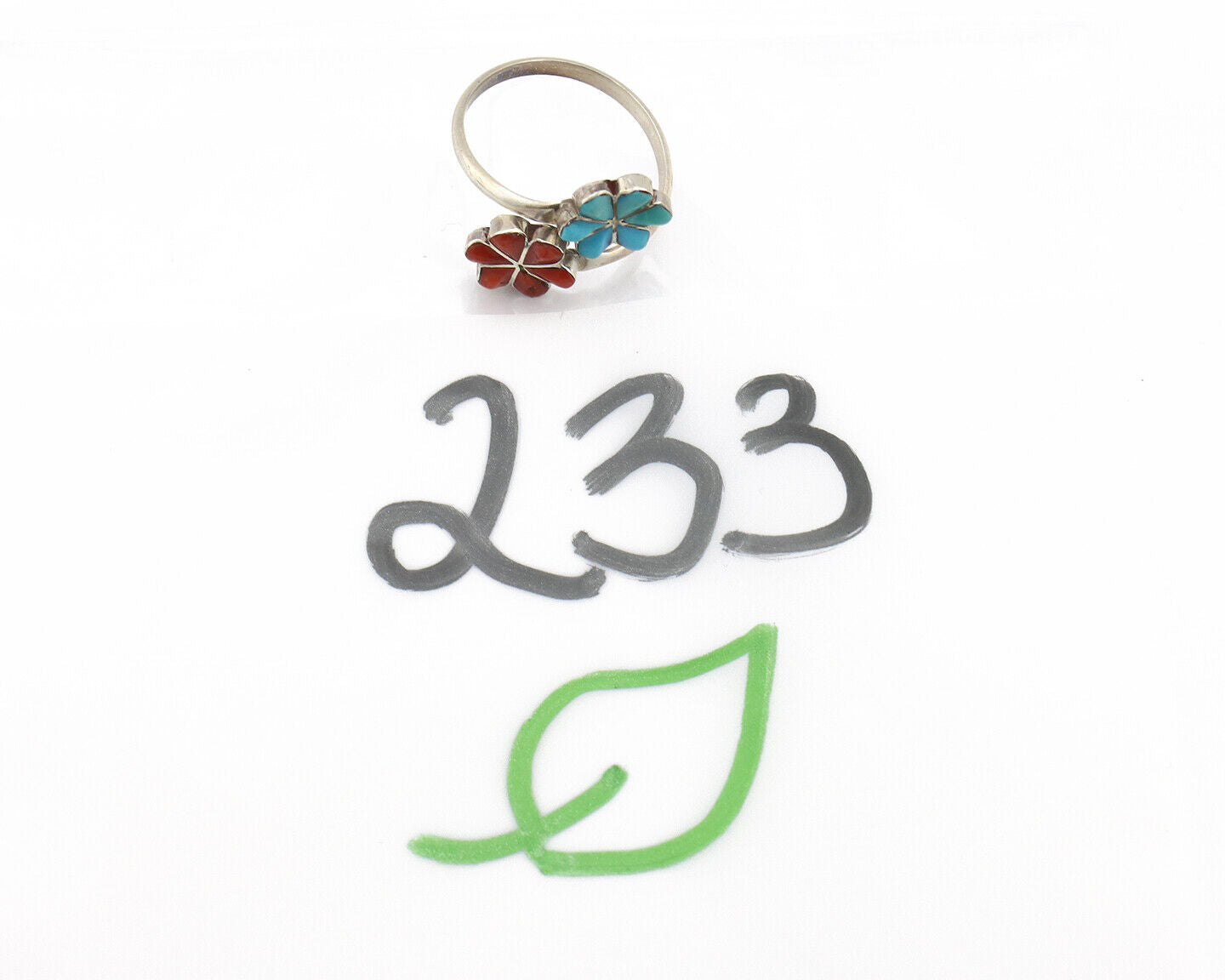 Zuni Flower Ring 925 Silver Turquoise & Coral Native American Artist C.80's
