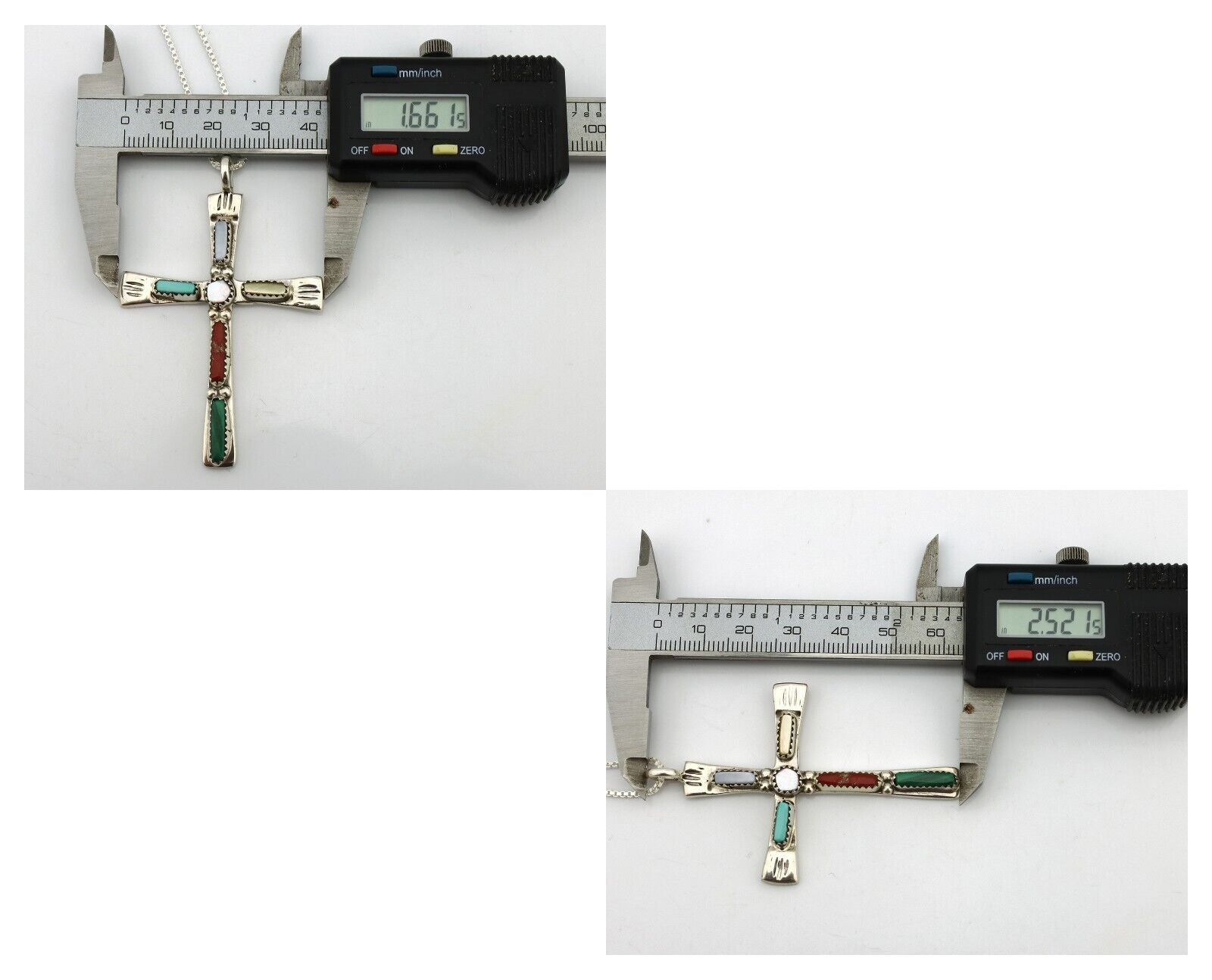 Zuni Handmade Cross Necklace 925 Silver Natural Gemstone Signed C. IULE C.80's