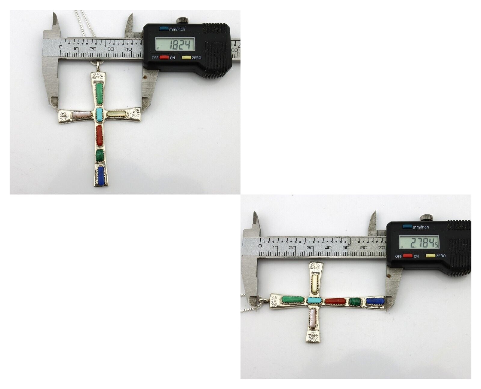 Zuni Handmade Cross Necklace 925 Silver Natural Gemstone Signed W. IULE C.80's