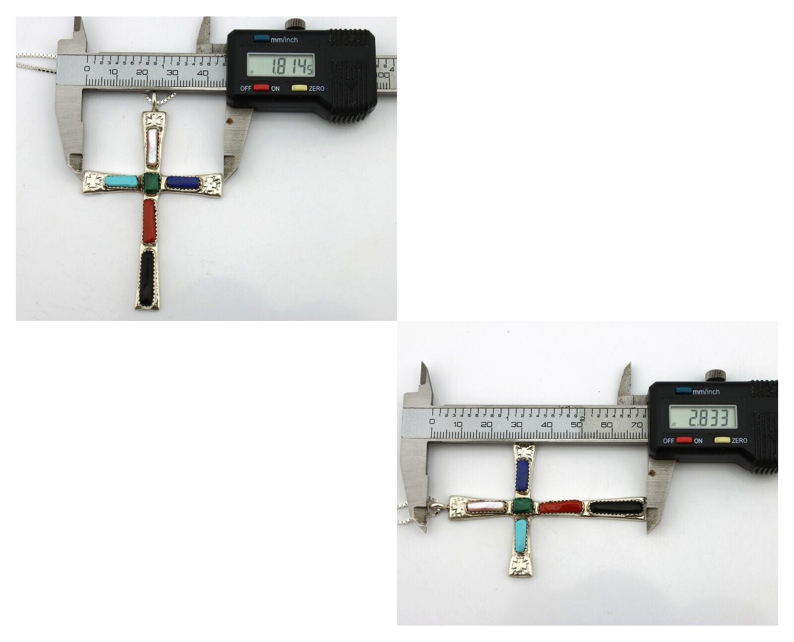 Zuni Handmade Cross Necklace 925 Silver Natural Gemstone Signed W. IULE C.80's