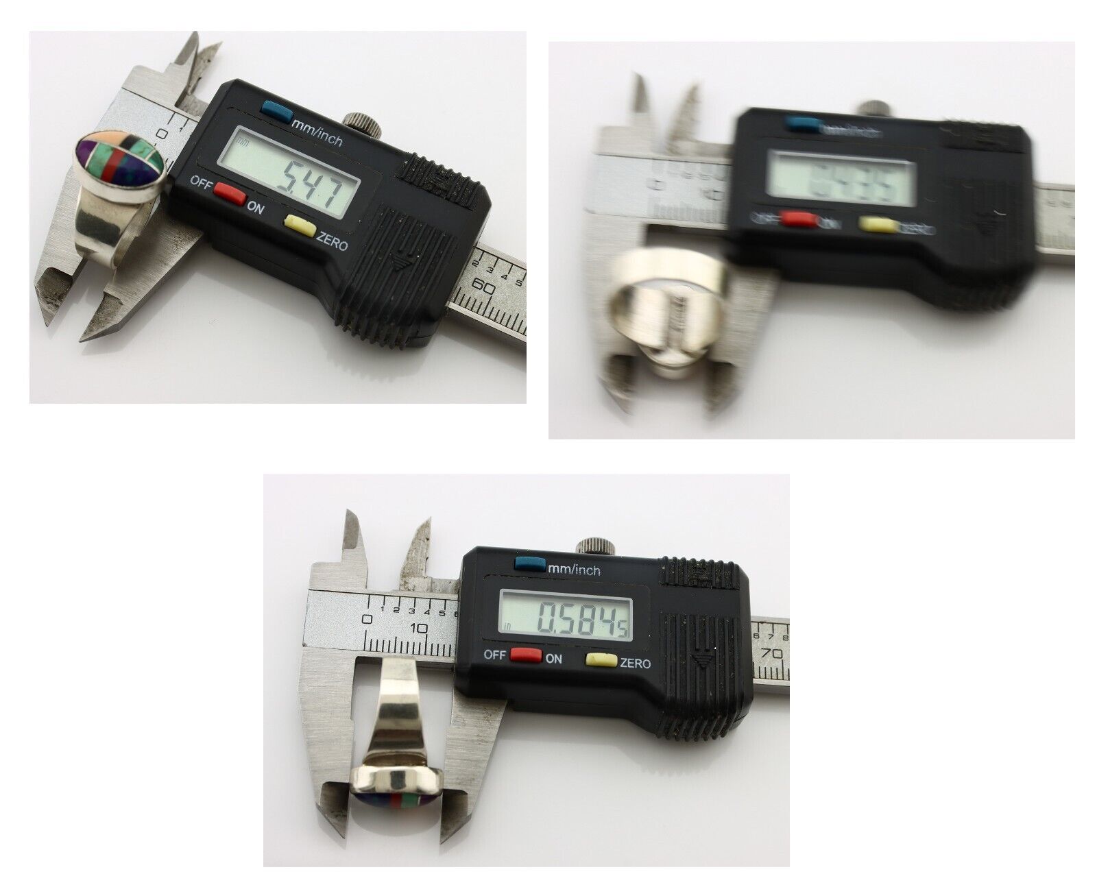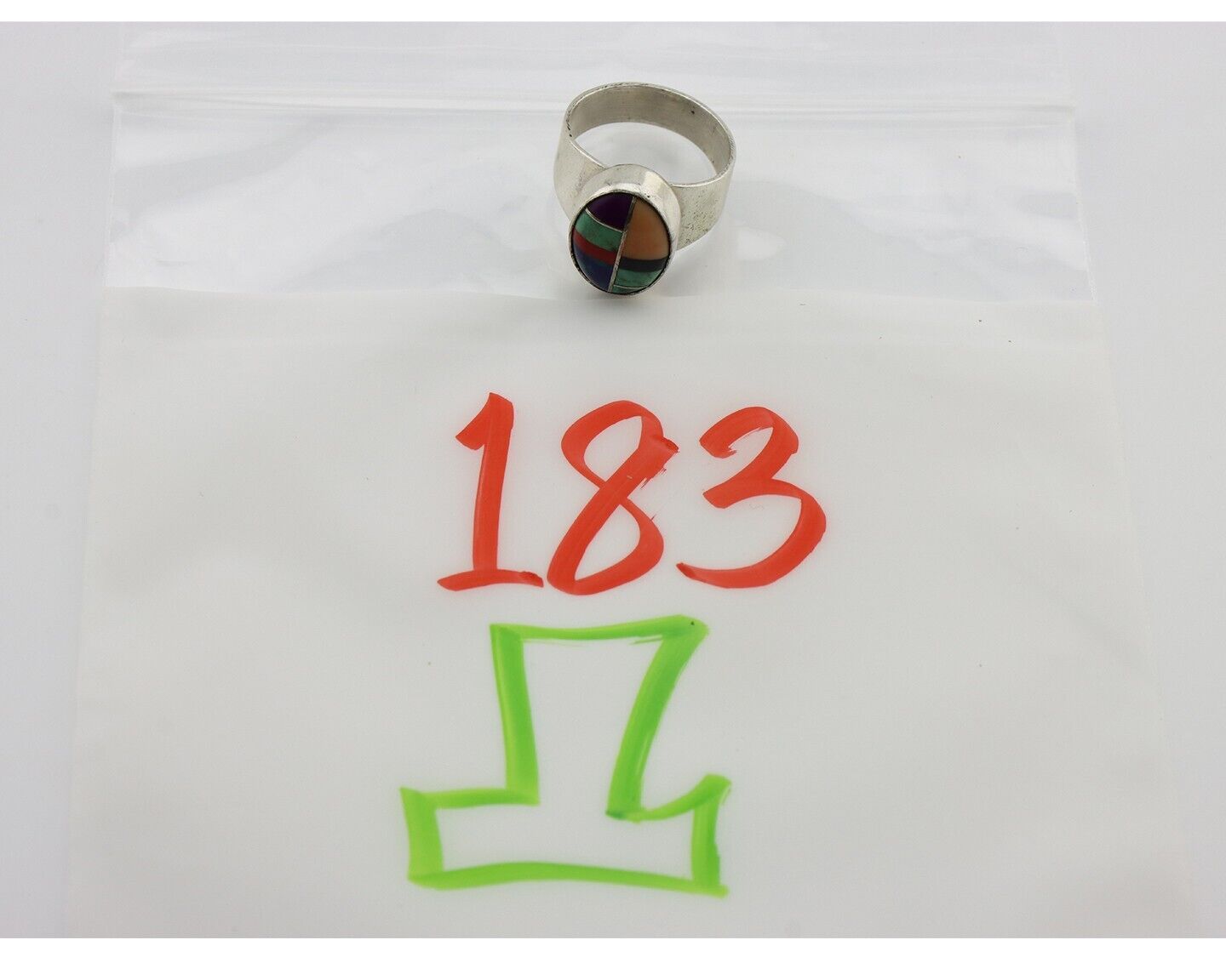Zuni Inlaid Ring 925 Silver Mixed Natural Gemstones Native American Artist C.80s