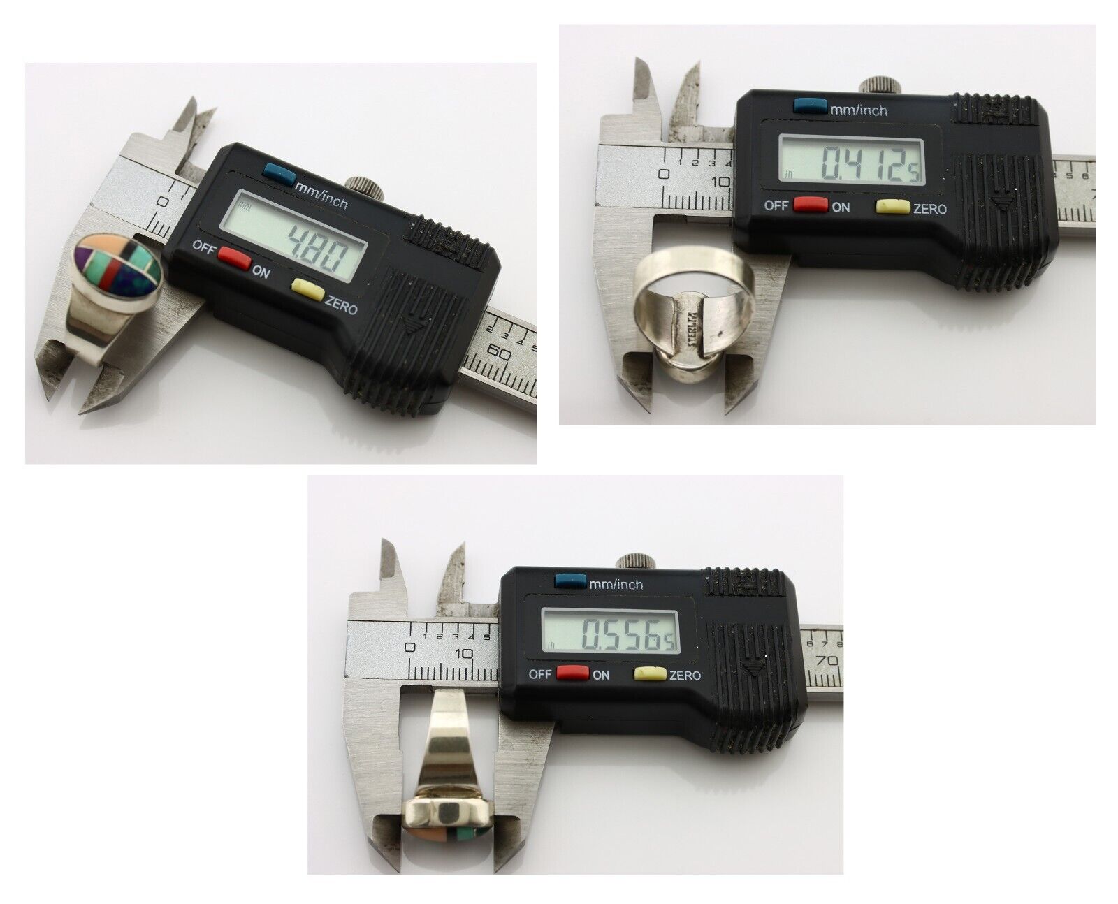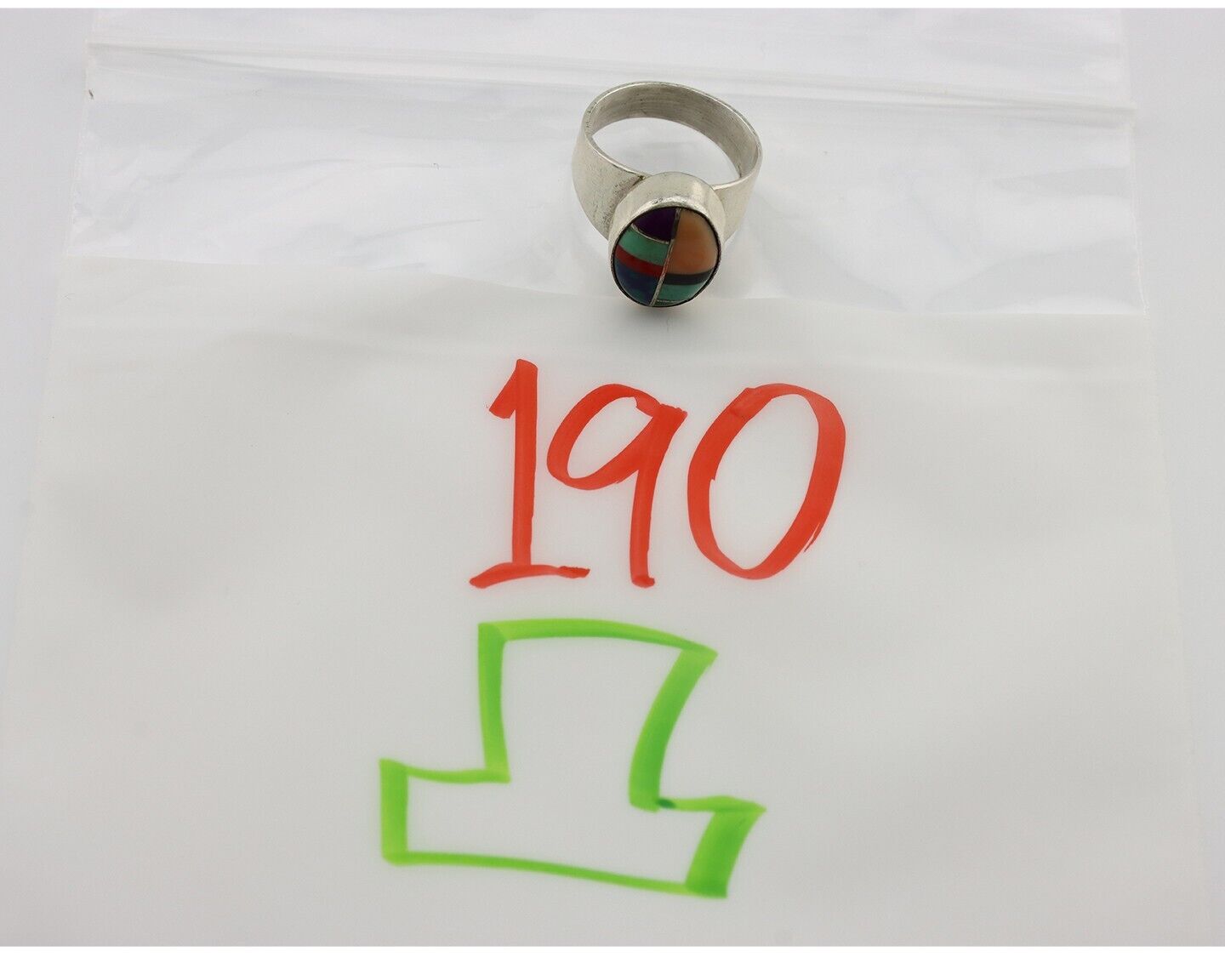 Zuni Inlaid Ring 925 Silver Mixed Natural Gemstones Native American Artist C.80s