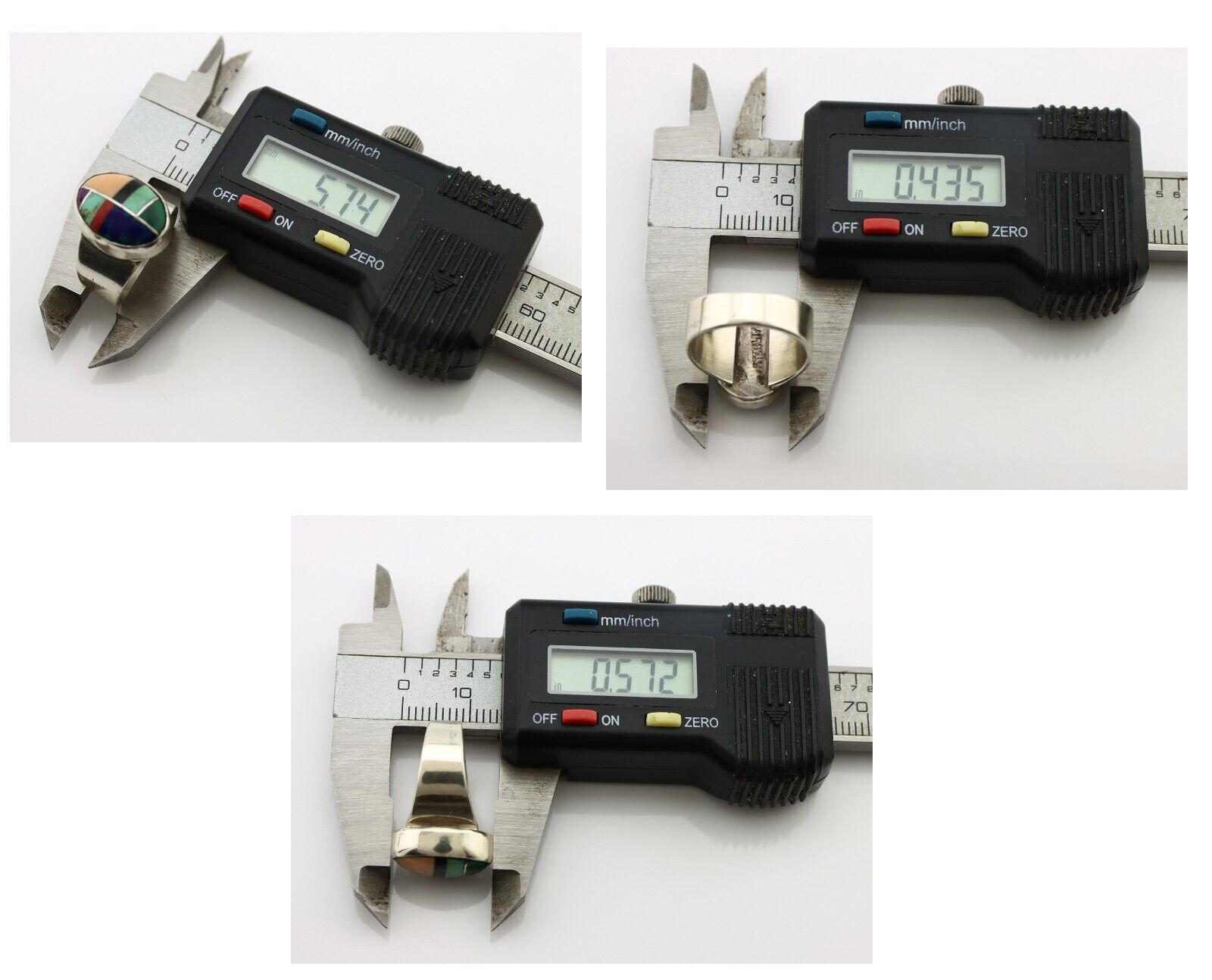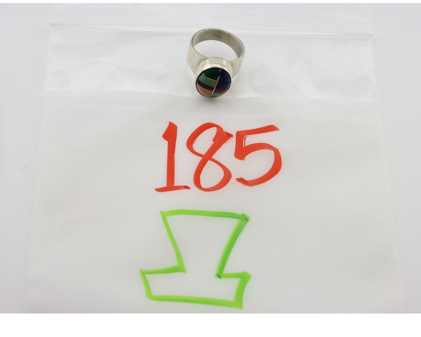 Zuni Inlaid Ring 925 Silver Mixed Natural Gemstones Native American Artist C.80s