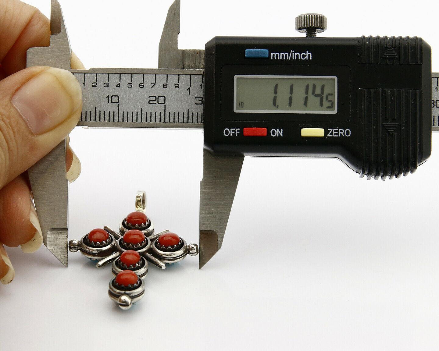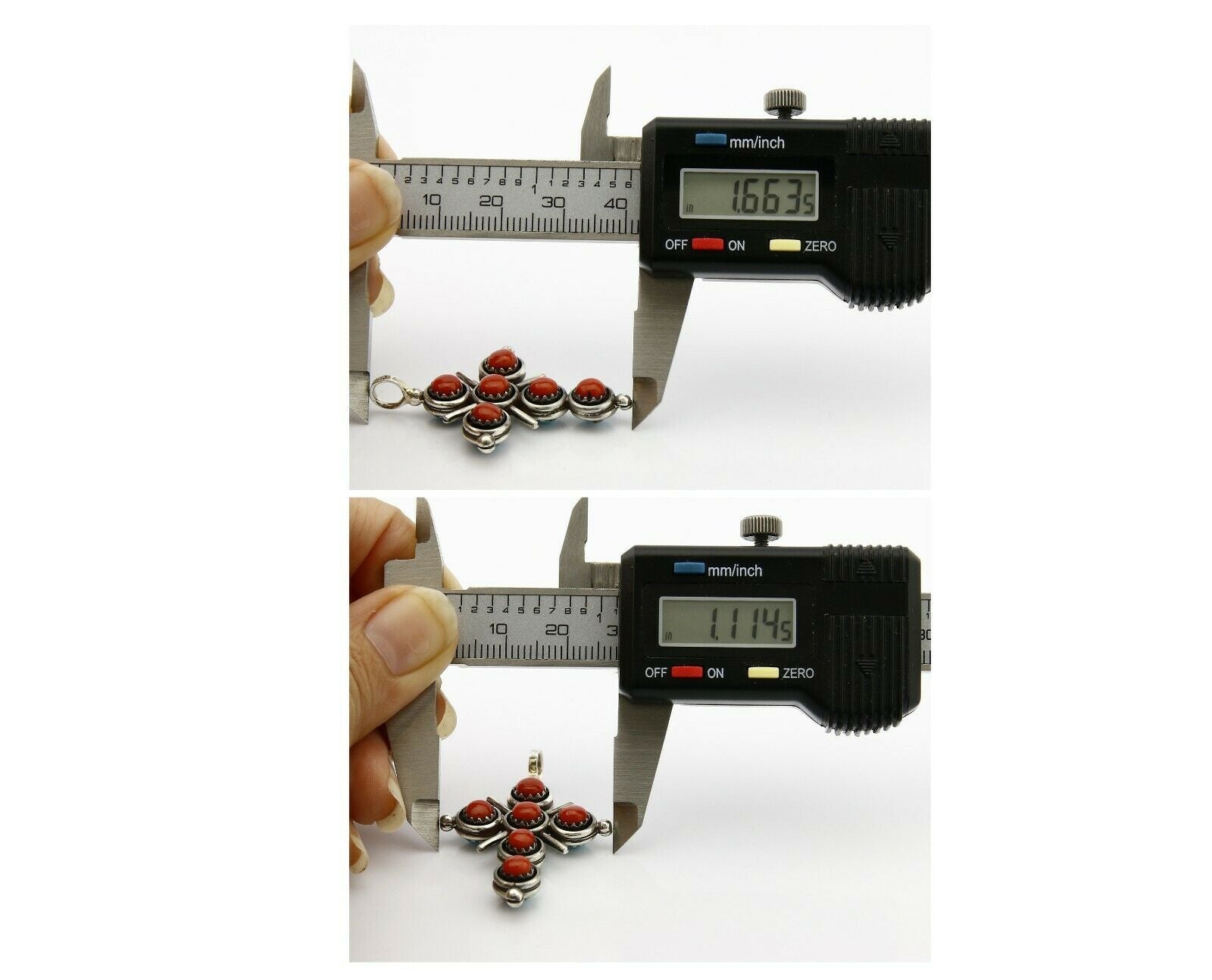 Zuni Natural Turquoise and Coral Reversible 925 Silver Handmade Pendant