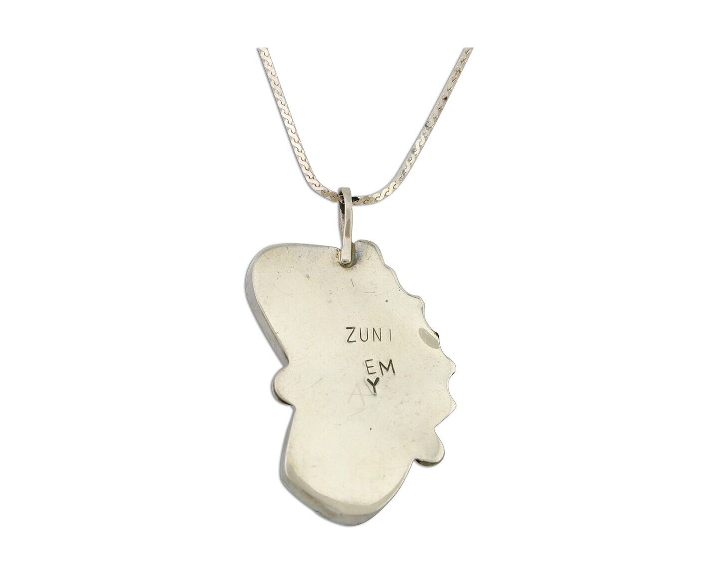 Zuni Necklace 925 Silver Blue Turquoise Artist Signed EMY C.80's
