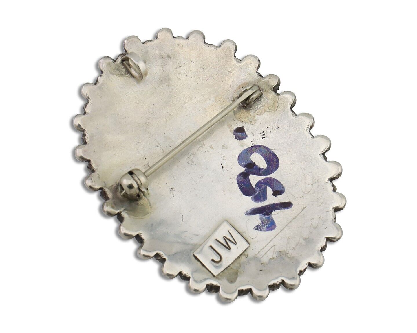 Zuni Pendant Pin 925 Silver Natural Turquoise Signed Judy Wallace C.80's