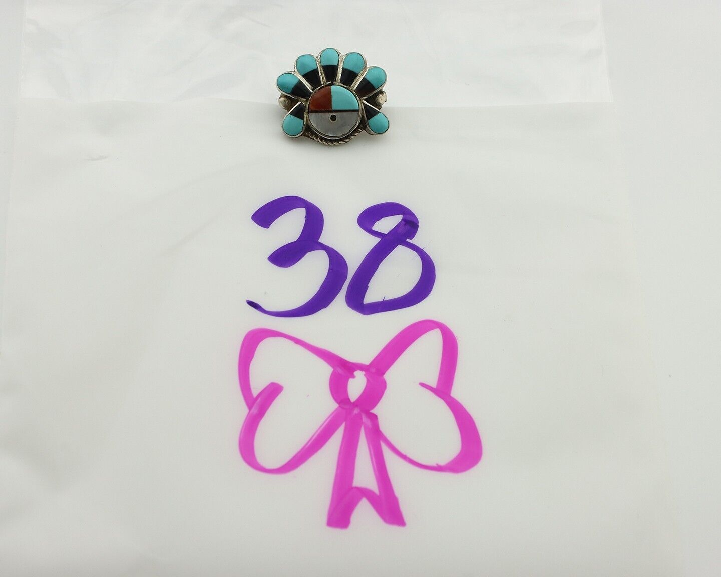 Zuni Pin Pendant .925 Silver Natural Gemstone Native American Artist C.80's